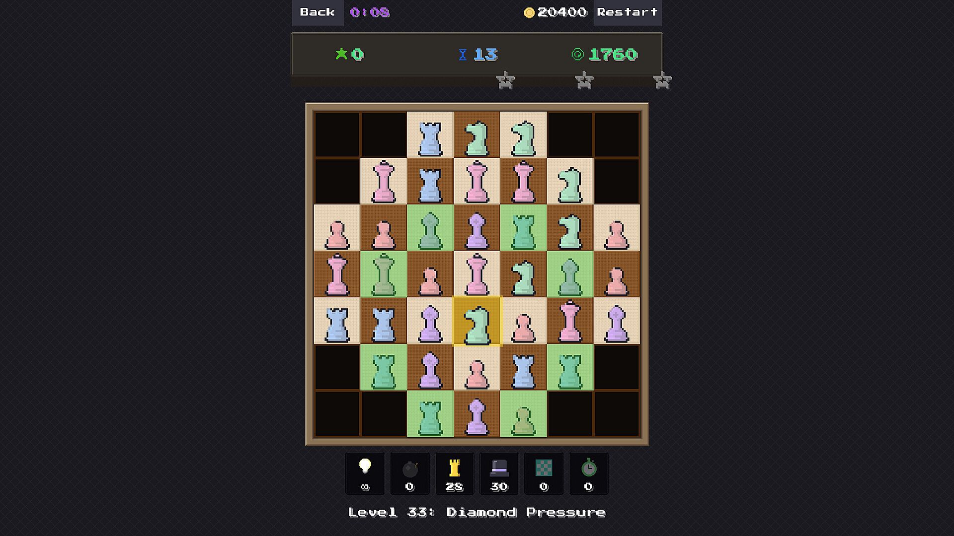 ChessMatch takes the movement rules of chess and drops them into a match-3 puzzle board. Swap pieces using the moves they'd make on a real chessboard -- pawns push forward, rooks slide across rows, bishops cut diagonals, however knights move -- and line up three or more of the same type to clear them from the board.