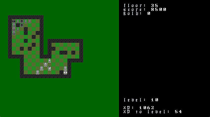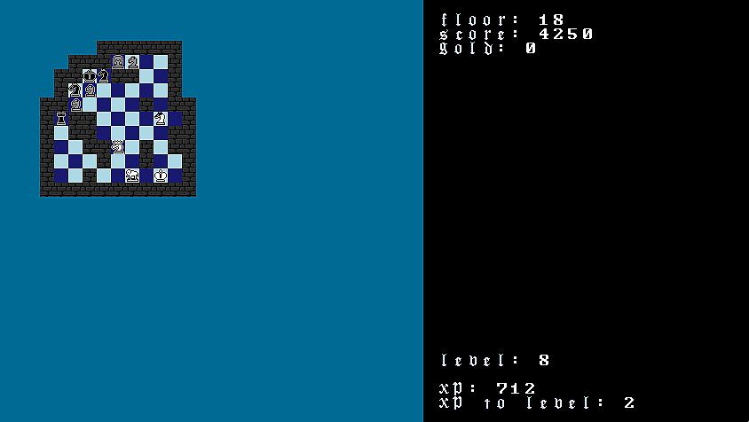 ChessRogue is a chess themed strategic roguelike, where you hire a party of pieces to traverse through the dungeons of increasing complexity. The goal of each level is to either capture the enemy king, or traverse down the staircase.