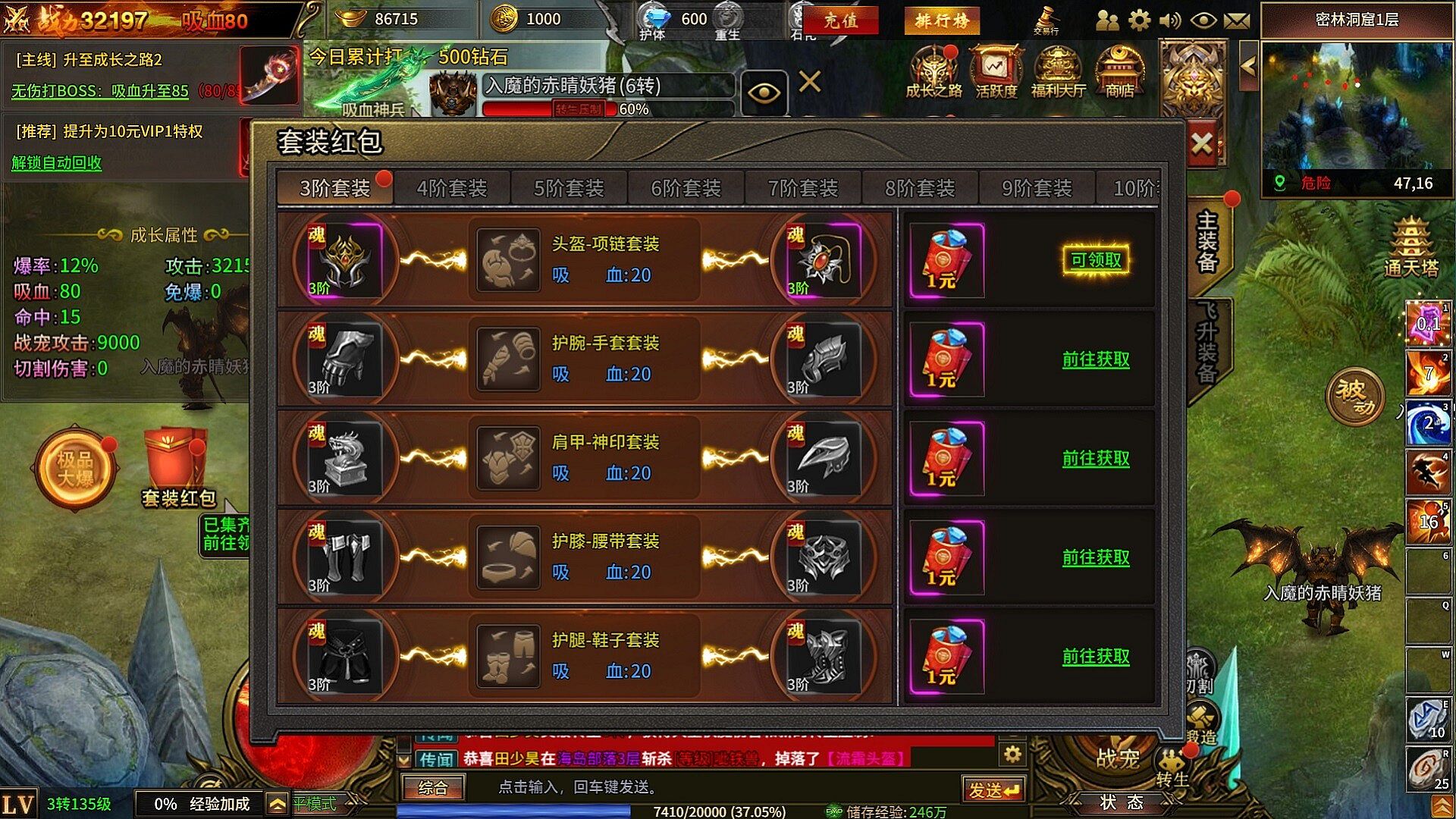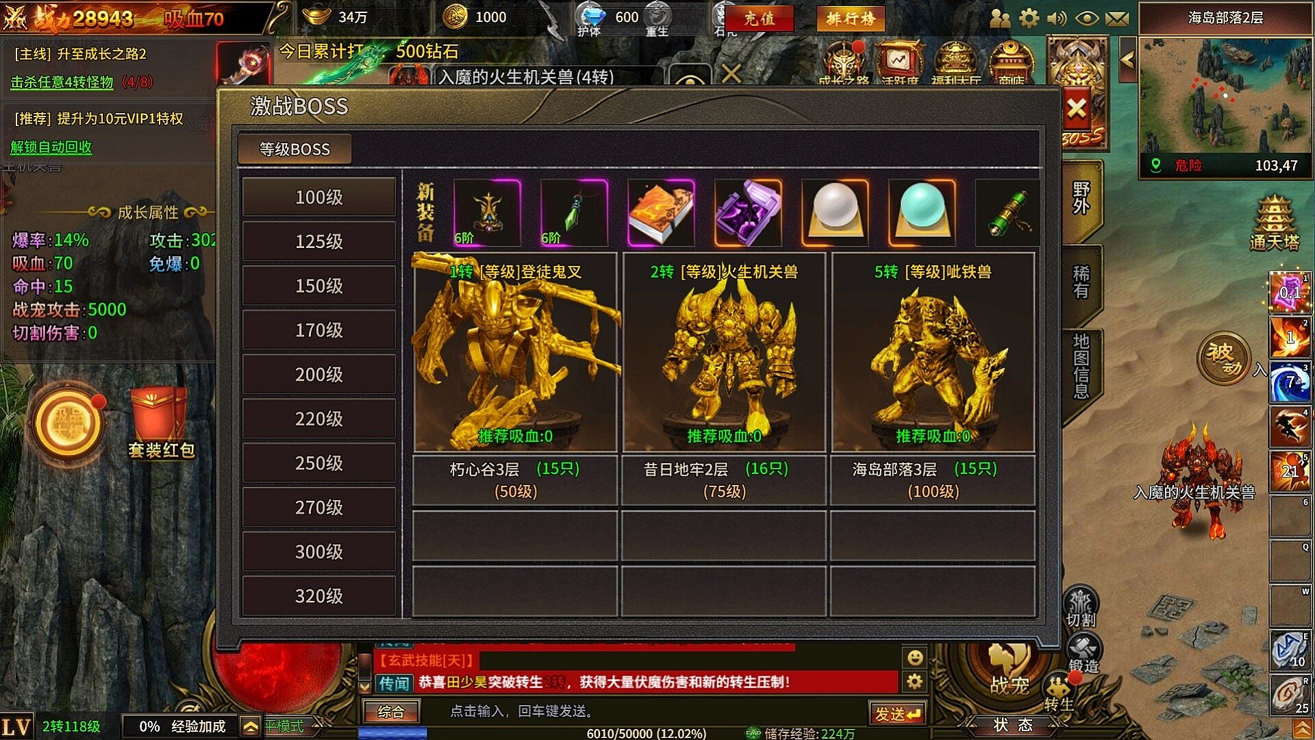 1)玩家的基础等级升级系统;以各种方式进行累计获取经验升级,转生道具地图内所有怪物都有掉落。