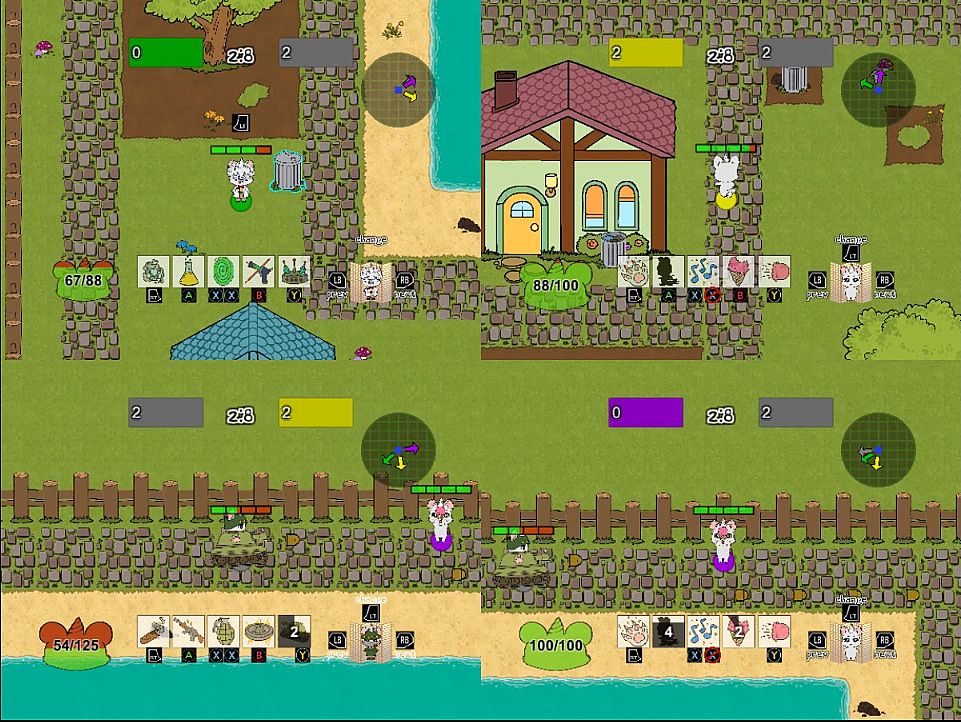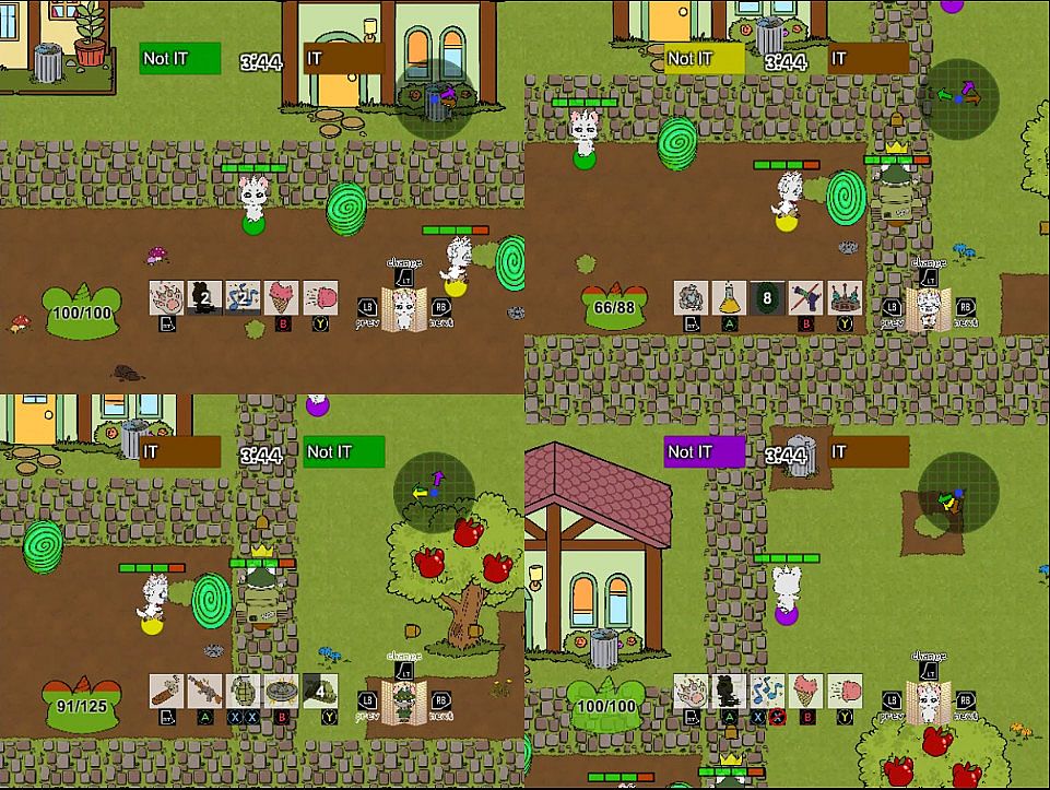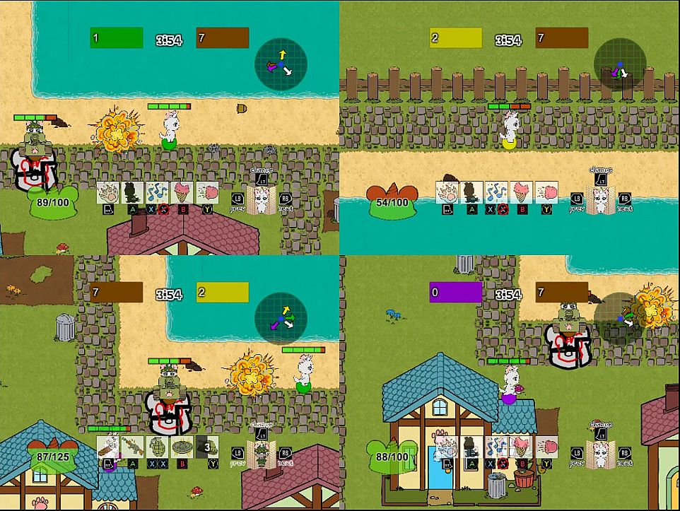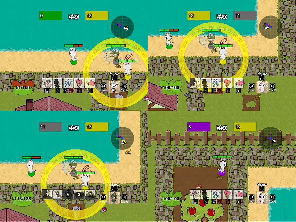 Chibisu's Costume Combat (C3) is a cute 2D Top-Down local multiplayer costume Party Battle Game! Play as Chibisu in a variety of unique costumes and use their abilities and map objects to defeat your friends and foes alike. Change costumes at any time to match the situation, throw your enemies for a loop, or even sync your attacks with your friends for wombo combos!