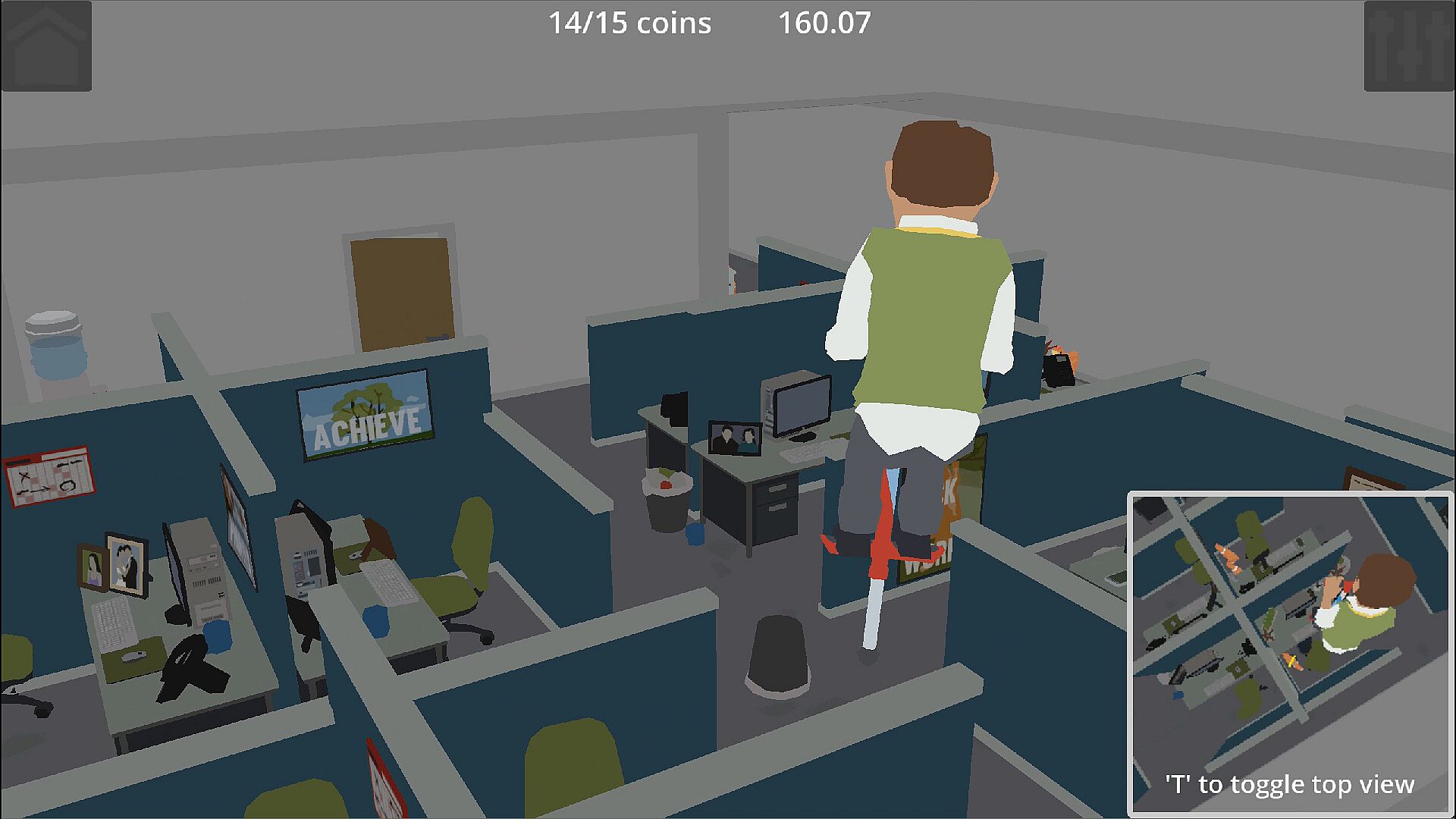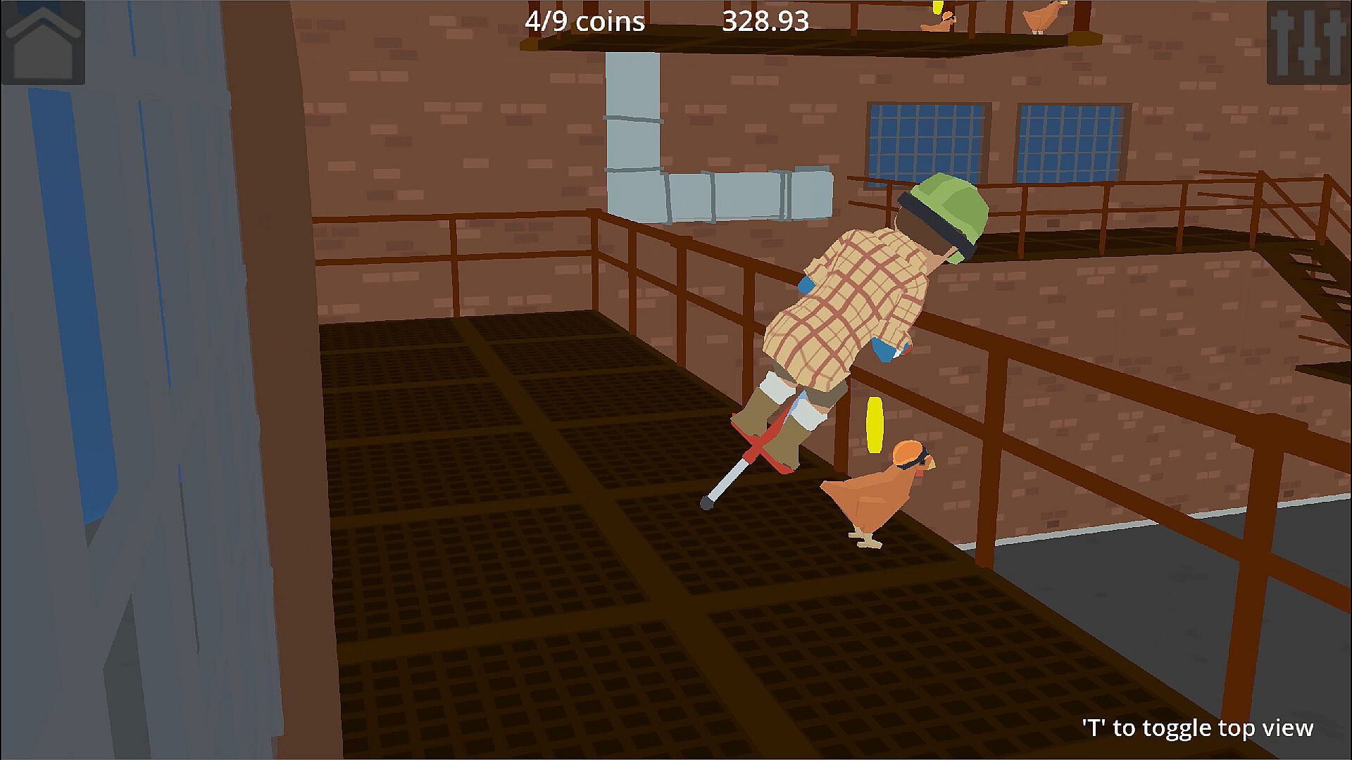 Chicken Chasers is a silly action game where you chase chickens around different environments, each with unique challenges, while maneuvering the novel controls of a pogo stick. Your only objective is to collect all the coins in the levels.
