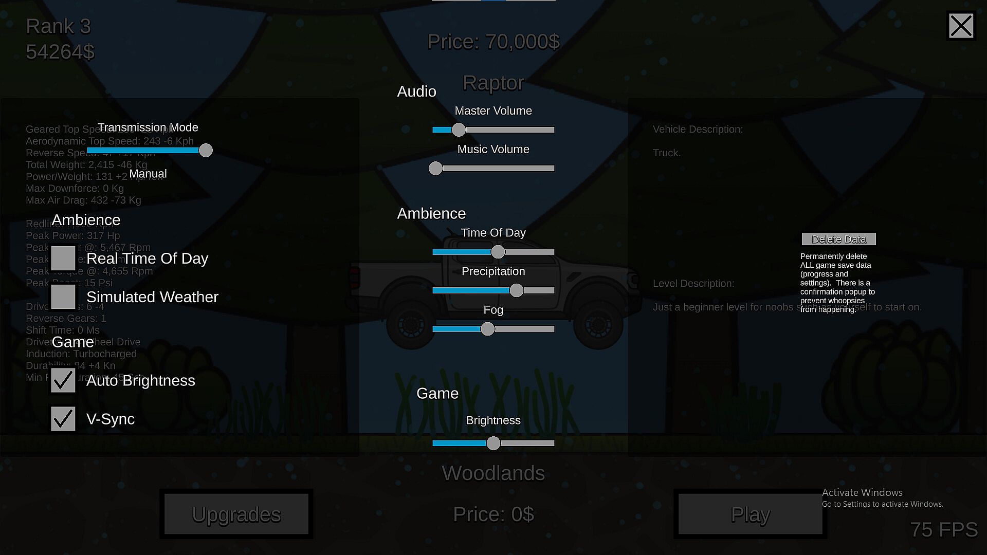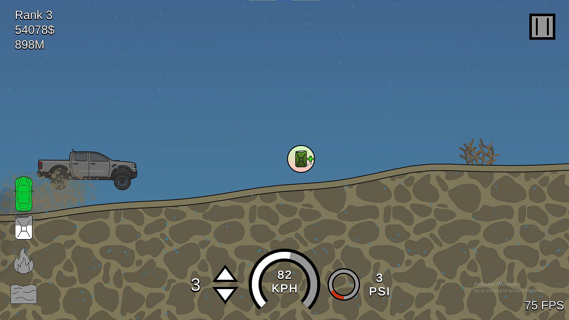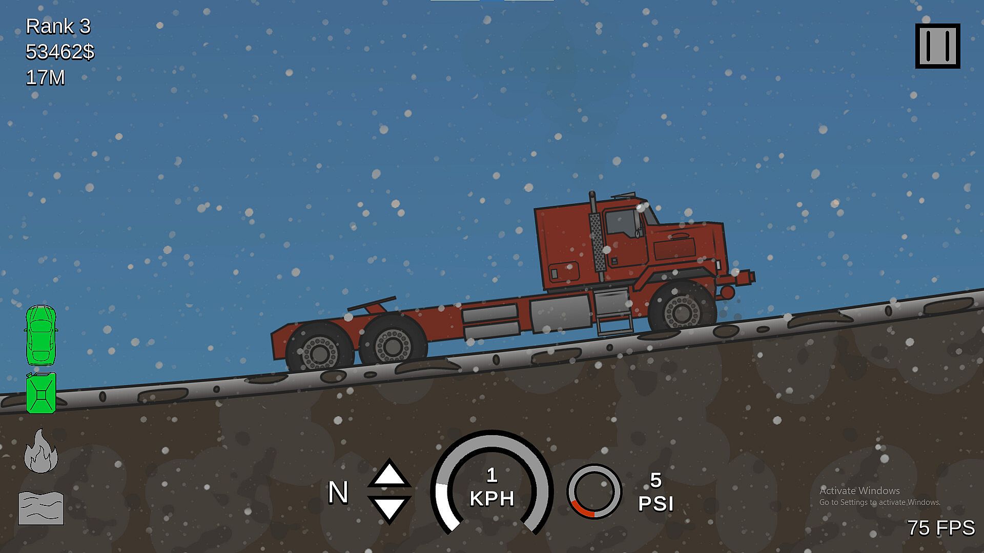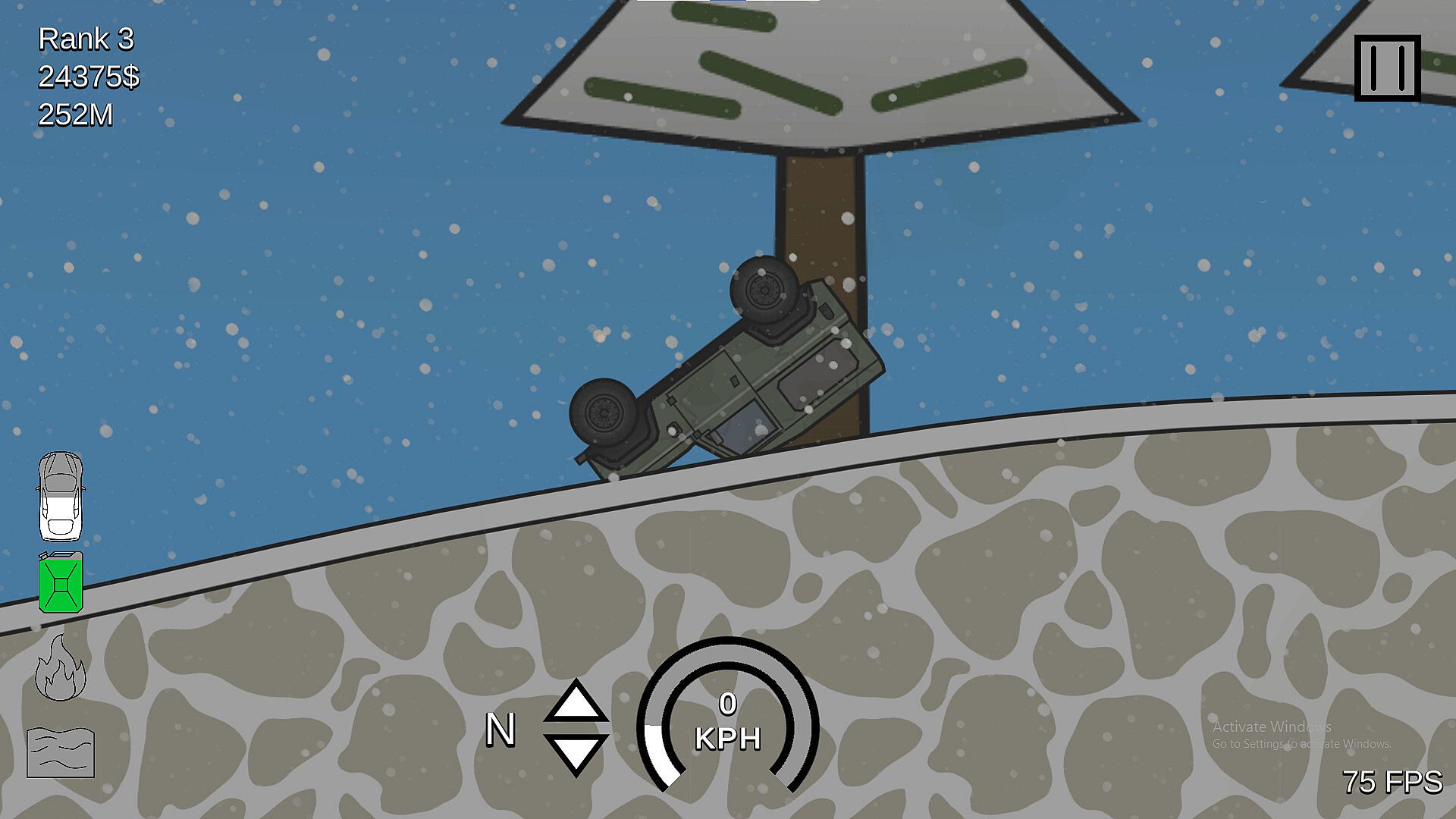 A simple yet complex simulator-ish driving game, with the goal being to drive as far as possible and collect money to buy vehicles, levels and upgrades.