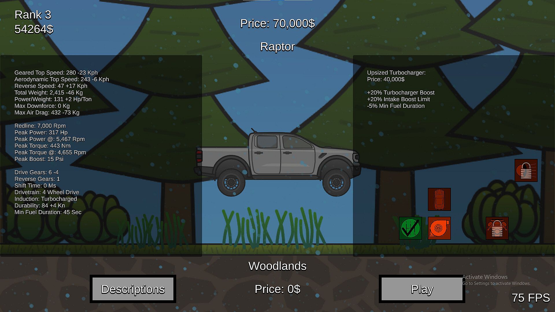 The main menu is quite detailed, and gives you plenty of useful info on your vehicle, as well as cheesy descriptions written by yours truly.