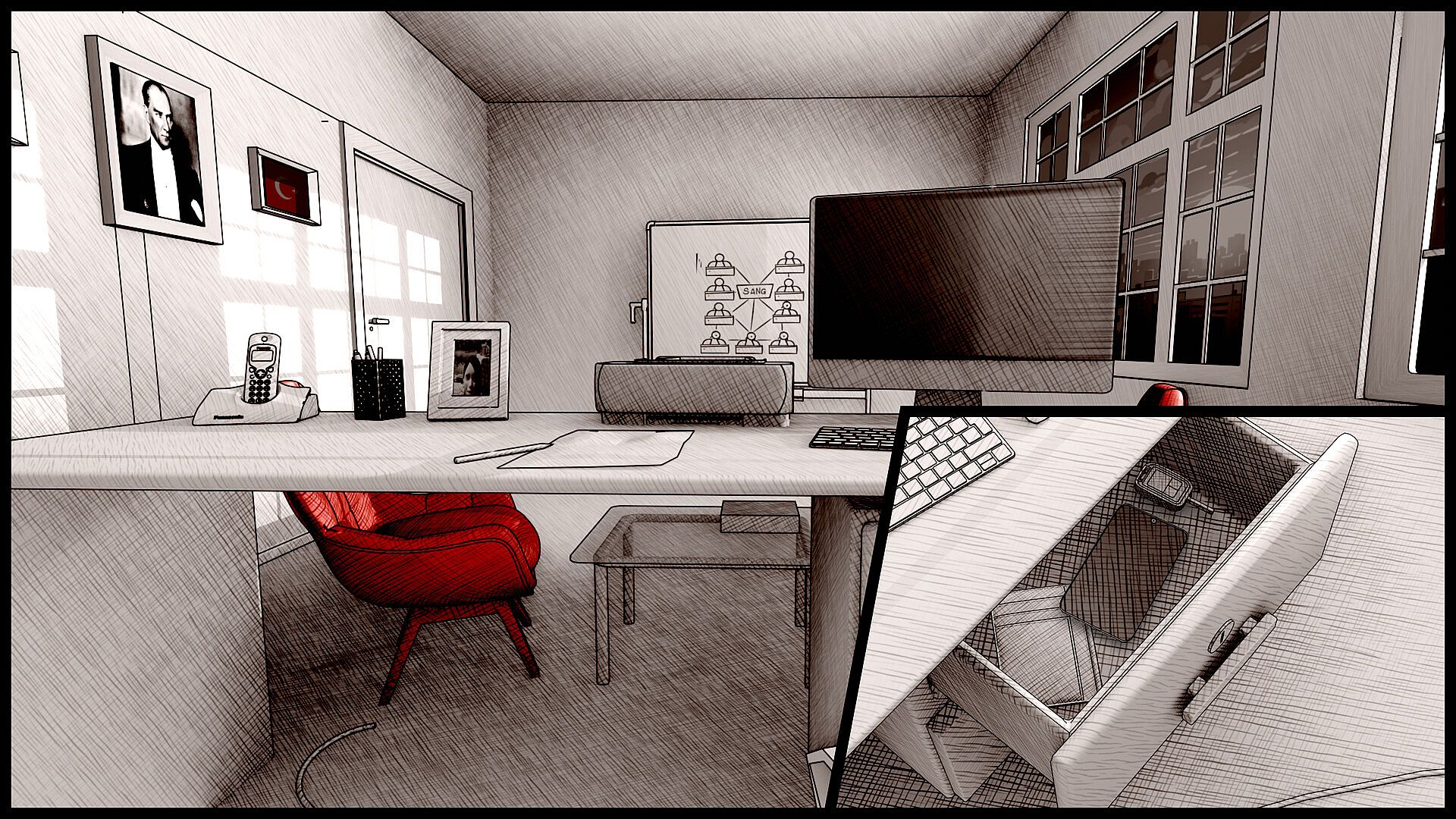 Are you ready to chase mysterious events and dark secrets? Step into the shoes of Chief Cenab and solve puzzles, interact with characters, and uncover secrets in this world brought to life through a black-and-white comic book style with special color highlights.