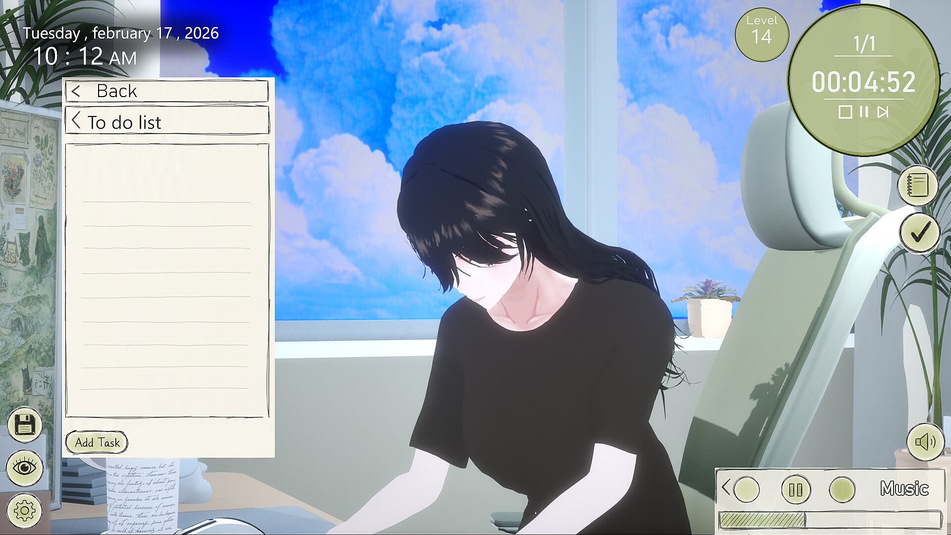 Chill with Luna includes built-in productivity tools designed to help you stay focused naturally: