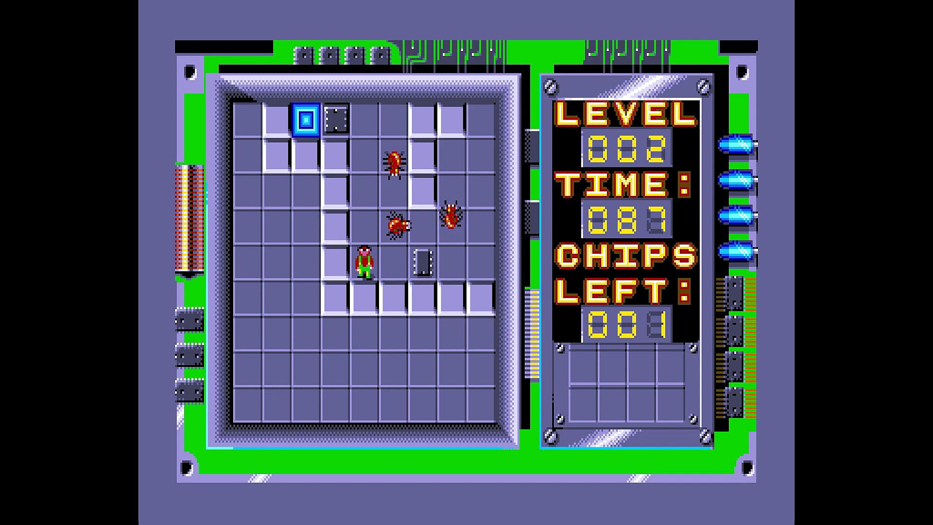 Solve over 140 challenging grid-based puzzles, finding and using tools and devices such as keys, switches, pushable blocks and more, all while avoiding enemy creatures, and collecting computer chips to exit the level, all against the clock!