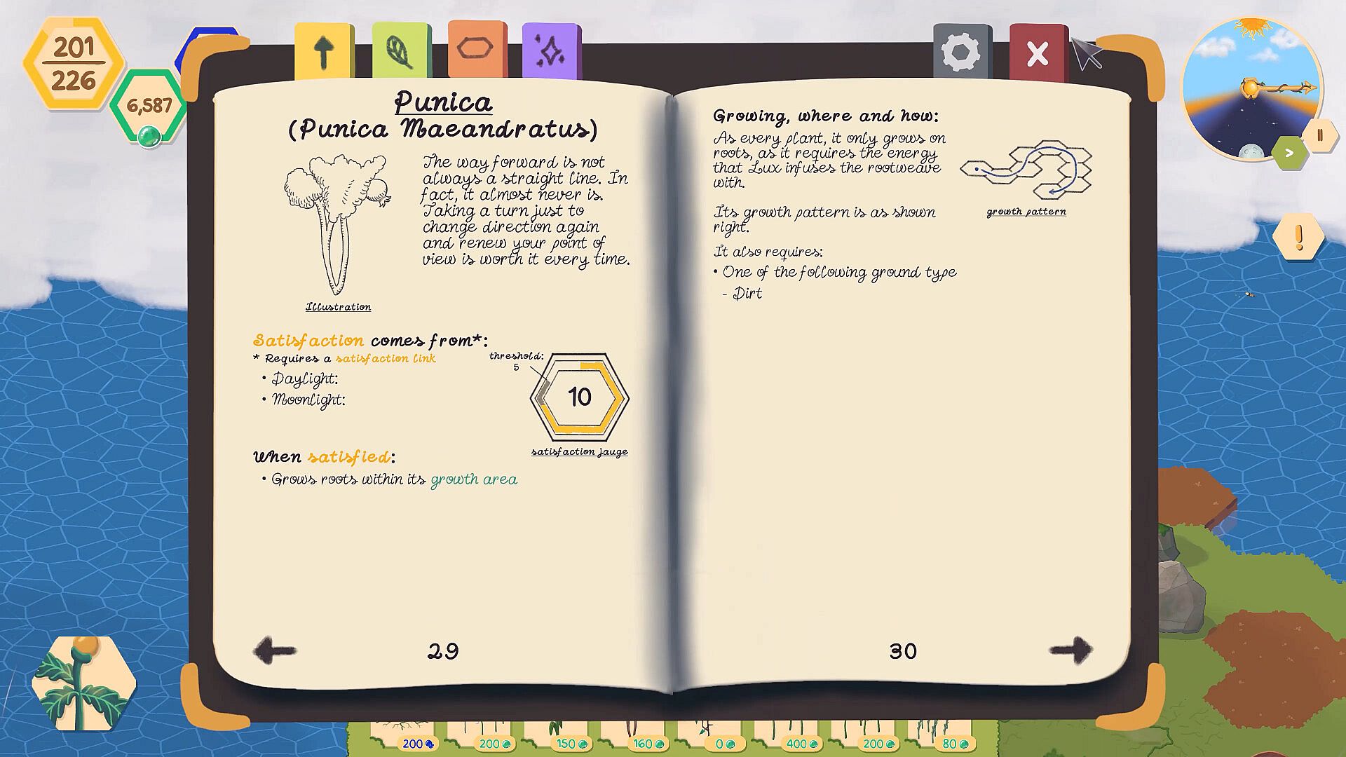 Whether it's the direction the plant is growing to, resources it produces, or the joy it gives to the other flowers around, each and every plant participate to your exploration and push your network's boundaries in a unique way. But every plant has its own constraints! You will need to slowly tend to your rootweave and maintain the satisfaction balance in order to awaken lost Lux's sisters.