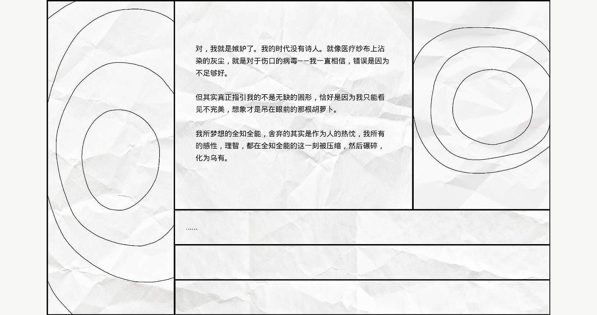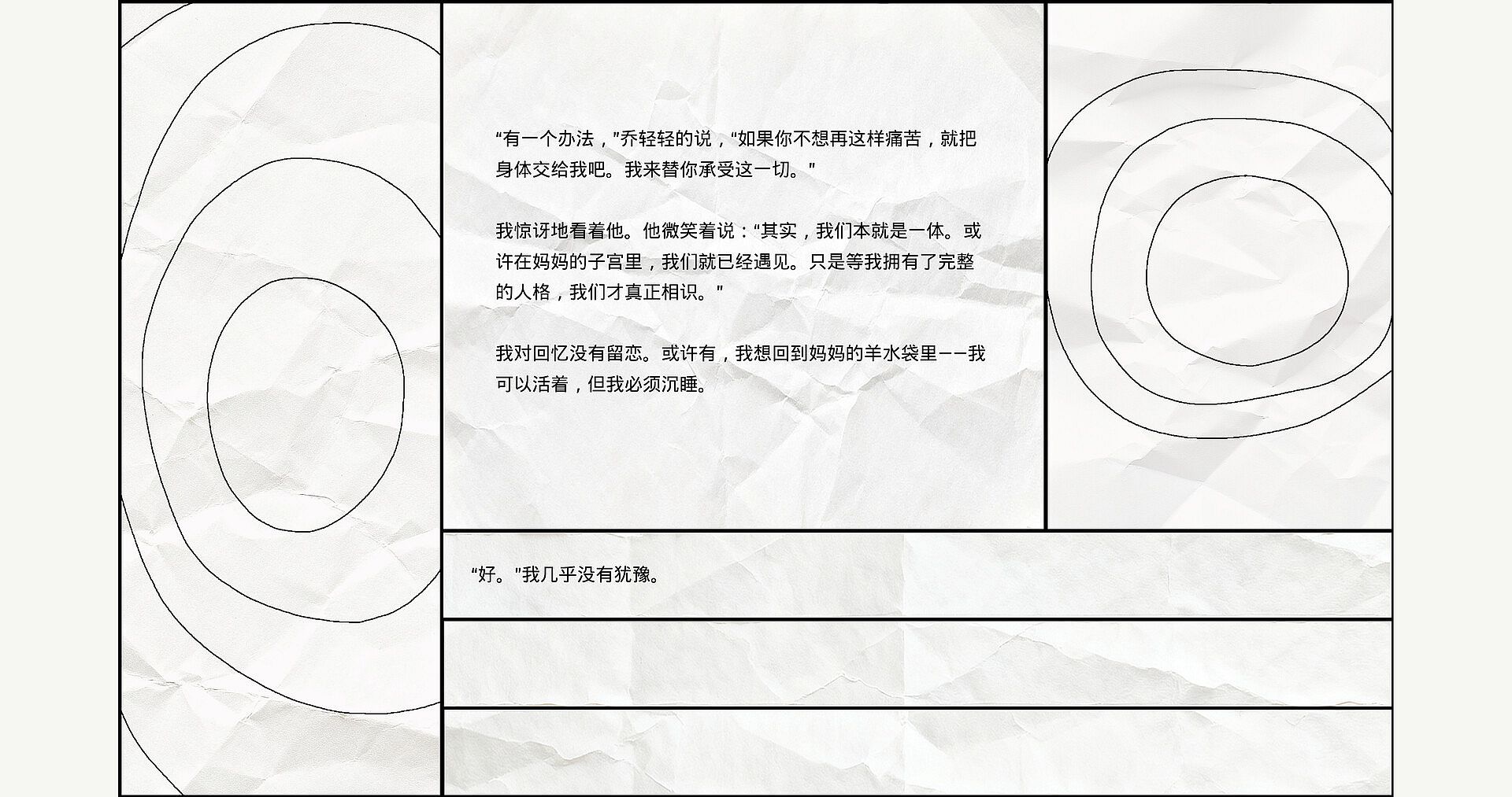 Words cannot capture all of existence, for language is riddled with voids that breed misunderstanding. Beyond conveying logic, they spill over with countless inexplicable imaginings. Have you ever felt, in human communication, that words fail to capture your meaning? And that desperately trying to patch your speech is ultimately a futile endeavor?Do you ever feel that incarcerating the intricate nature of the spirit within a physical form is, in essence, an act of violence against it?
