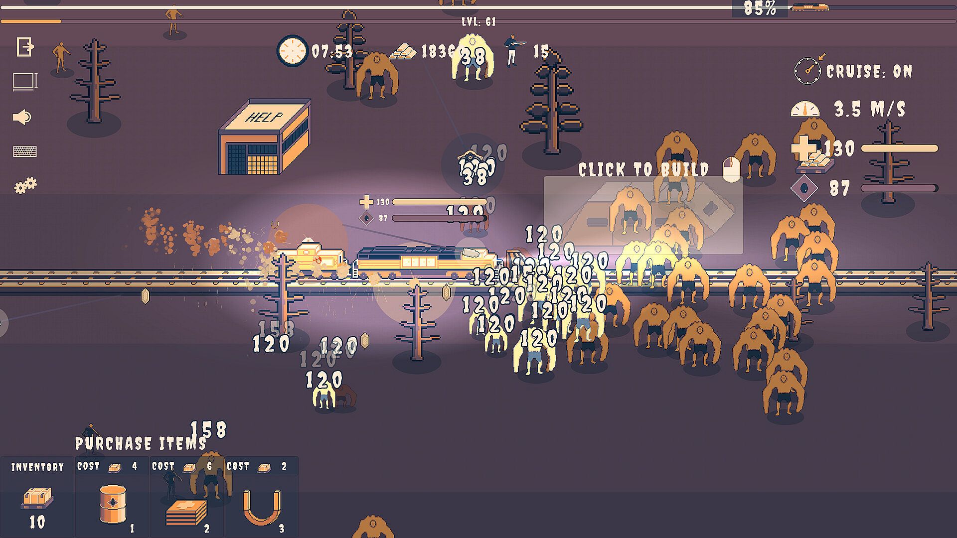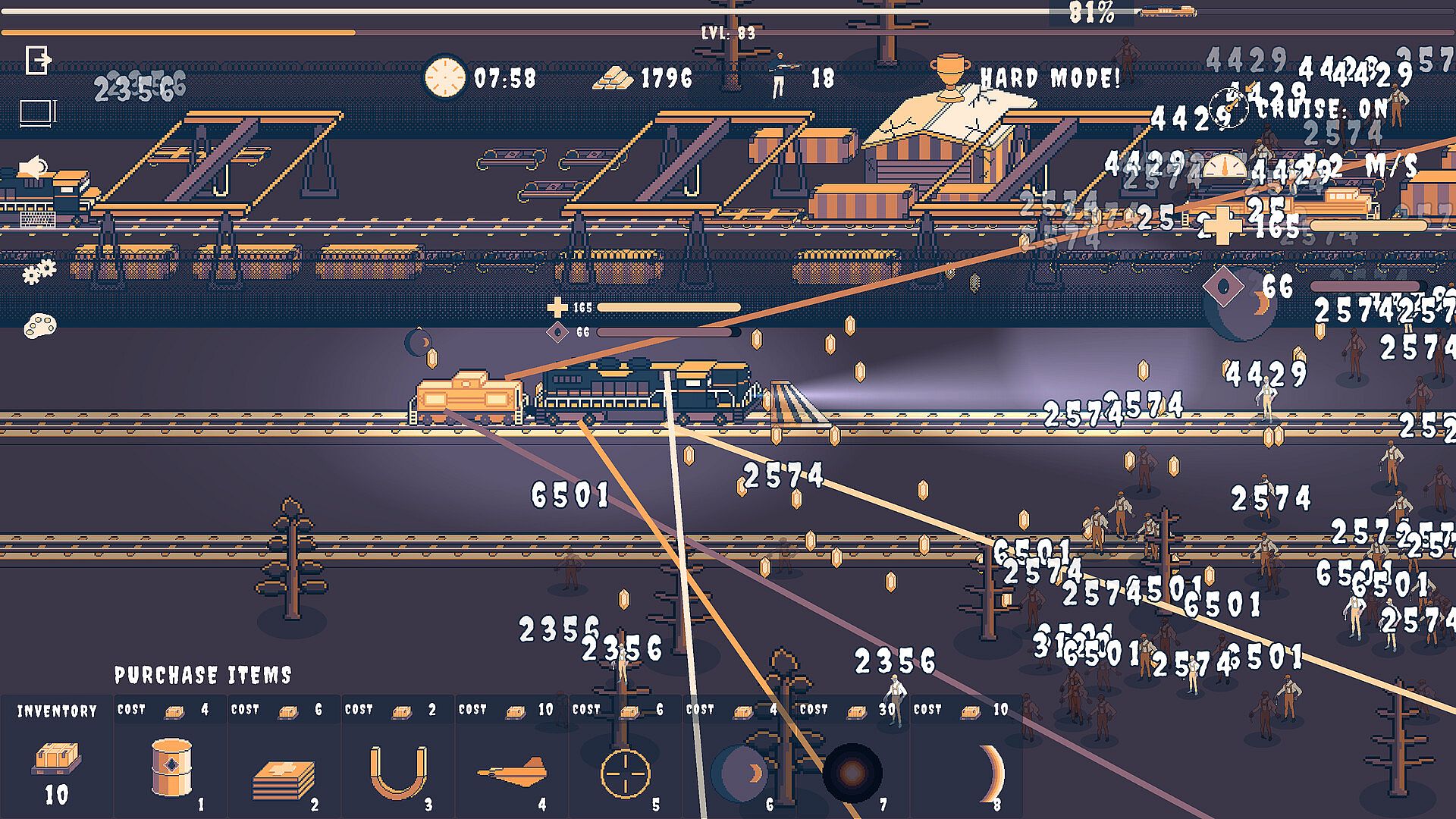• Lots of different zombies and zombie bosses to shoot down or crush underneath your locomotive.