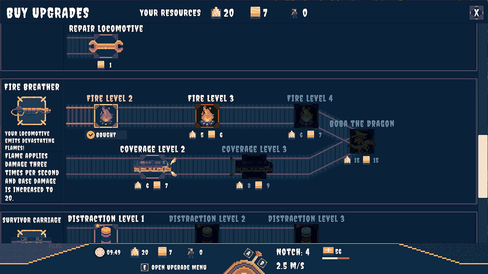 On each journey, you’ll encounter the optional Relic Keeper boss—defeat it to unlock an extra auxiliary system. Plus, visit the shop to buy an additional auxiliary system, stock up on resources, and hire survivors to strengthen your train!