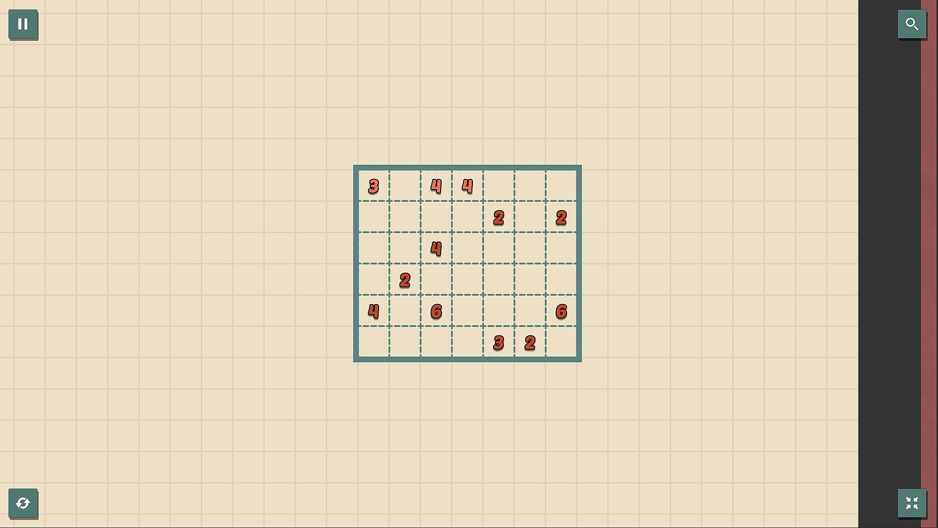 When you encounter difficulties, you can click the button on the upper right for hints. Also, you can click the button on the lower left to clear all the currently filled areas and refill them.