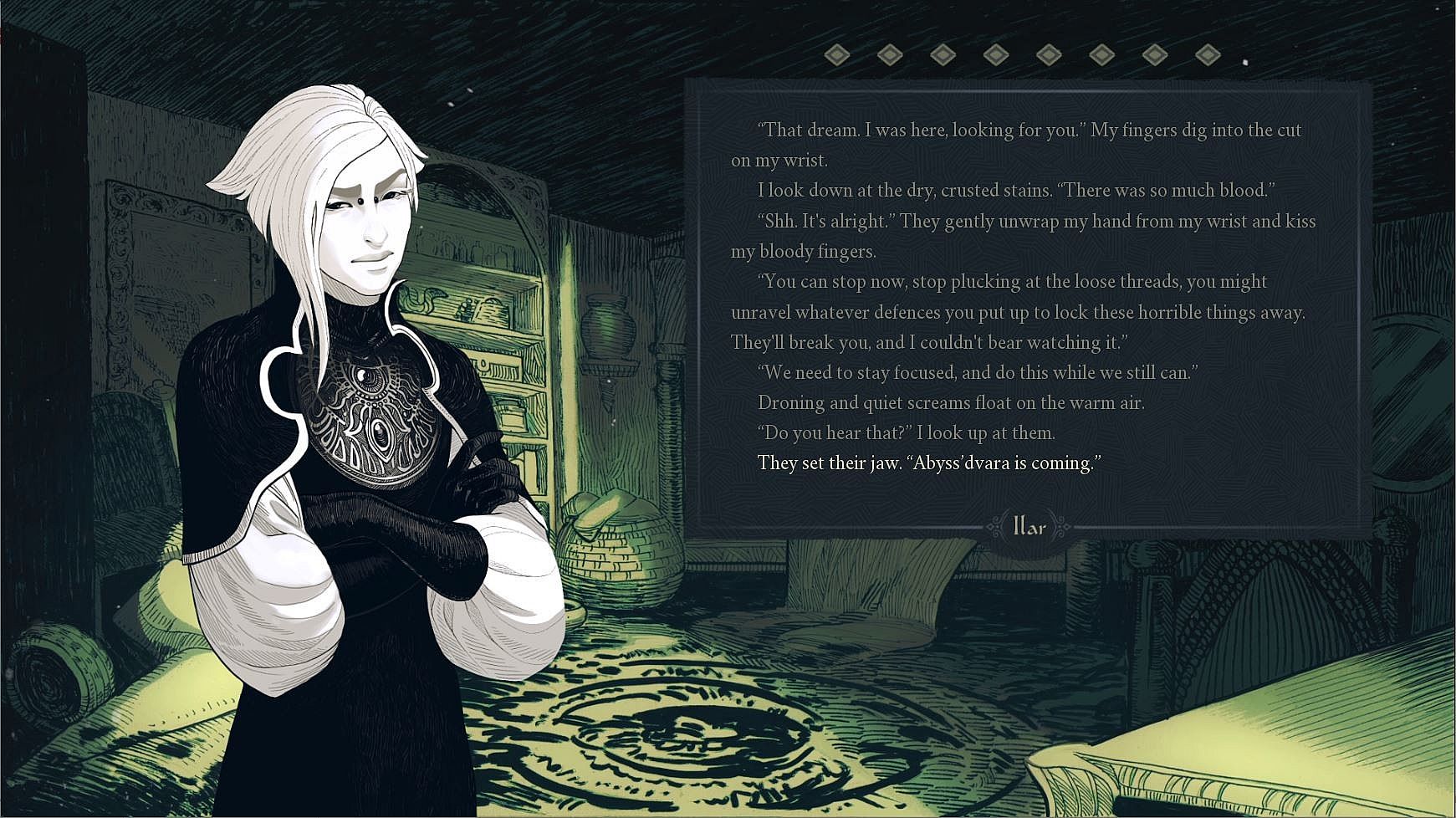 You wake in a collapsing tower with no memory. The only other person here—a silver-tongued mage named Ilar—claims to be saving your life through a desperate ritual. Yet, their story keeps changing and you keep dying.