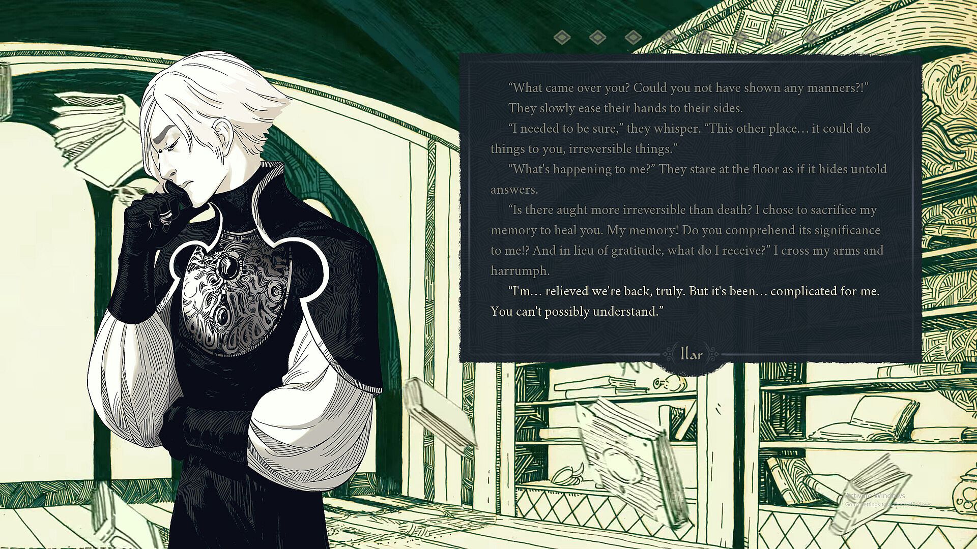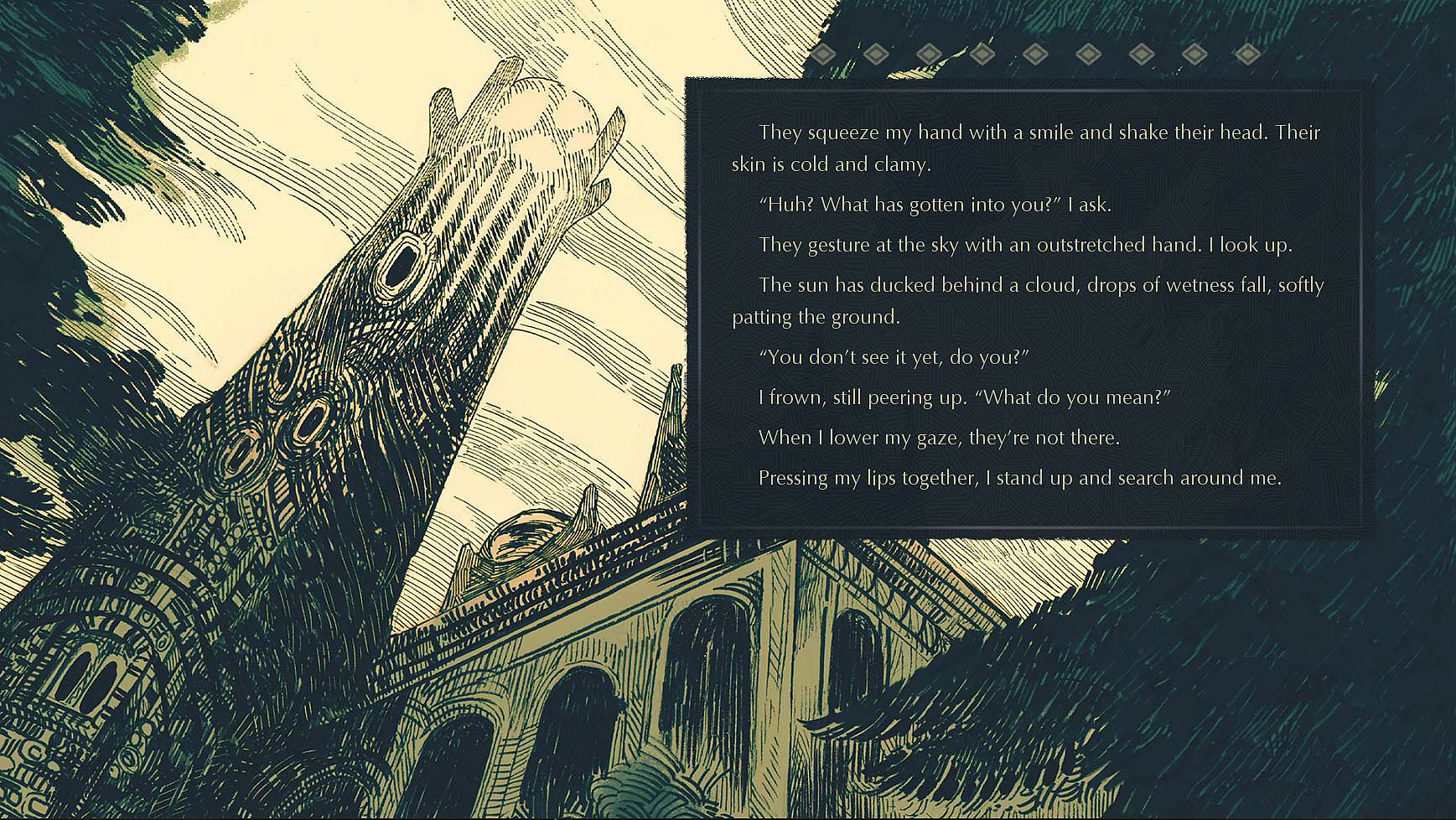 You wake in a collapsing tower with no memory. The only other person here—a silver-tongued mage named Ilar—claims to be saving your life through a desperate ritual. Yet, their story keeps changing and you keep dying.