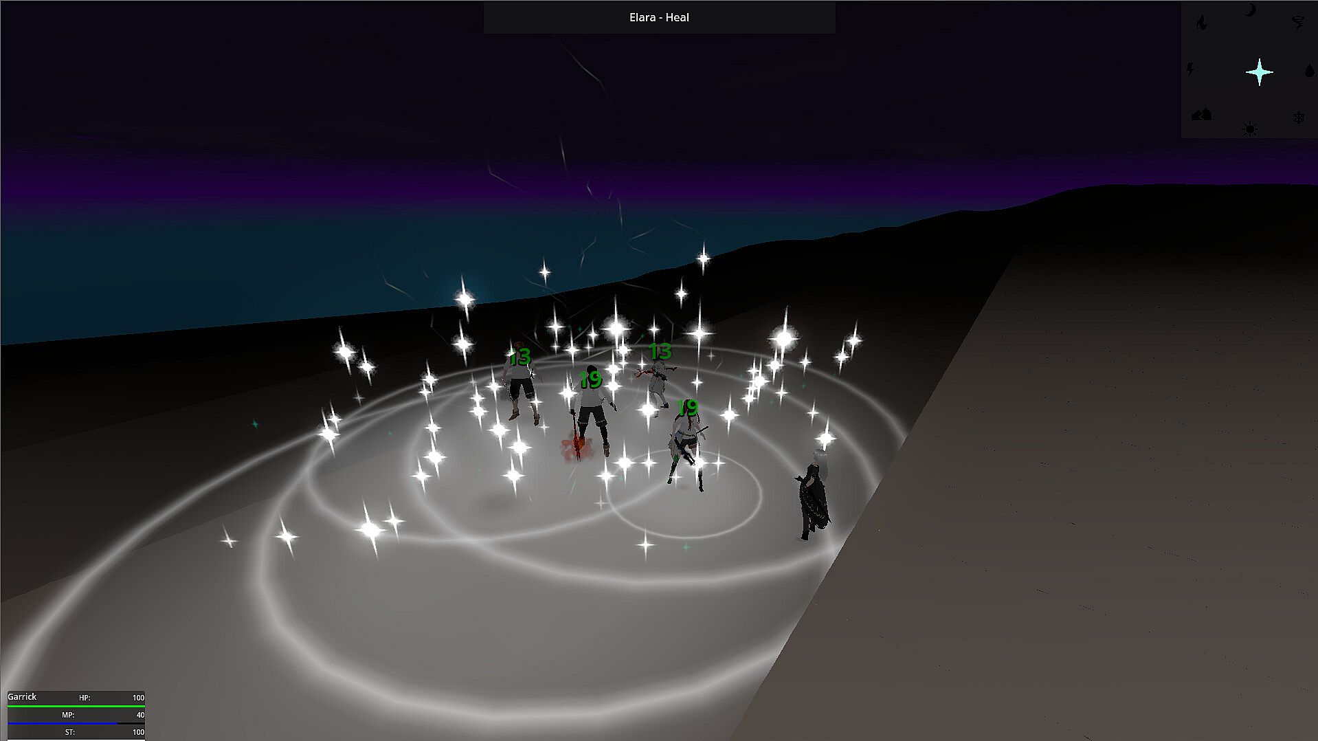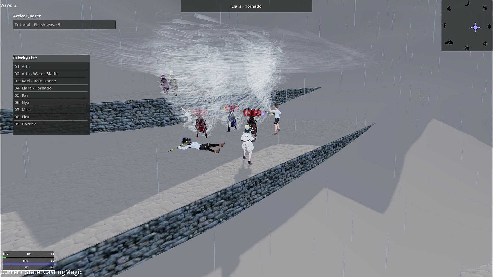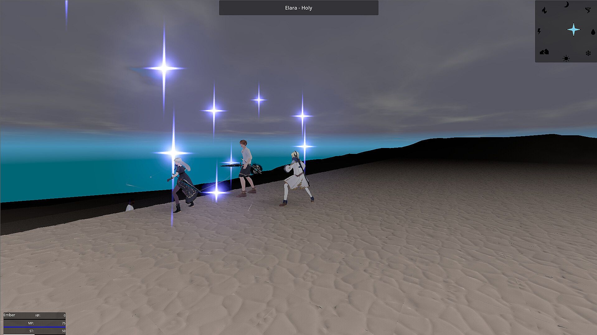 Elemental Map: Magic is pulled from the environment. As you use spells, that element is depleted in the environment, making other elements stronger and that element weaker. The player will learn how to use this elemental map strategically to their advantage, to either weaken their opponents or strengthen their favorite spells.