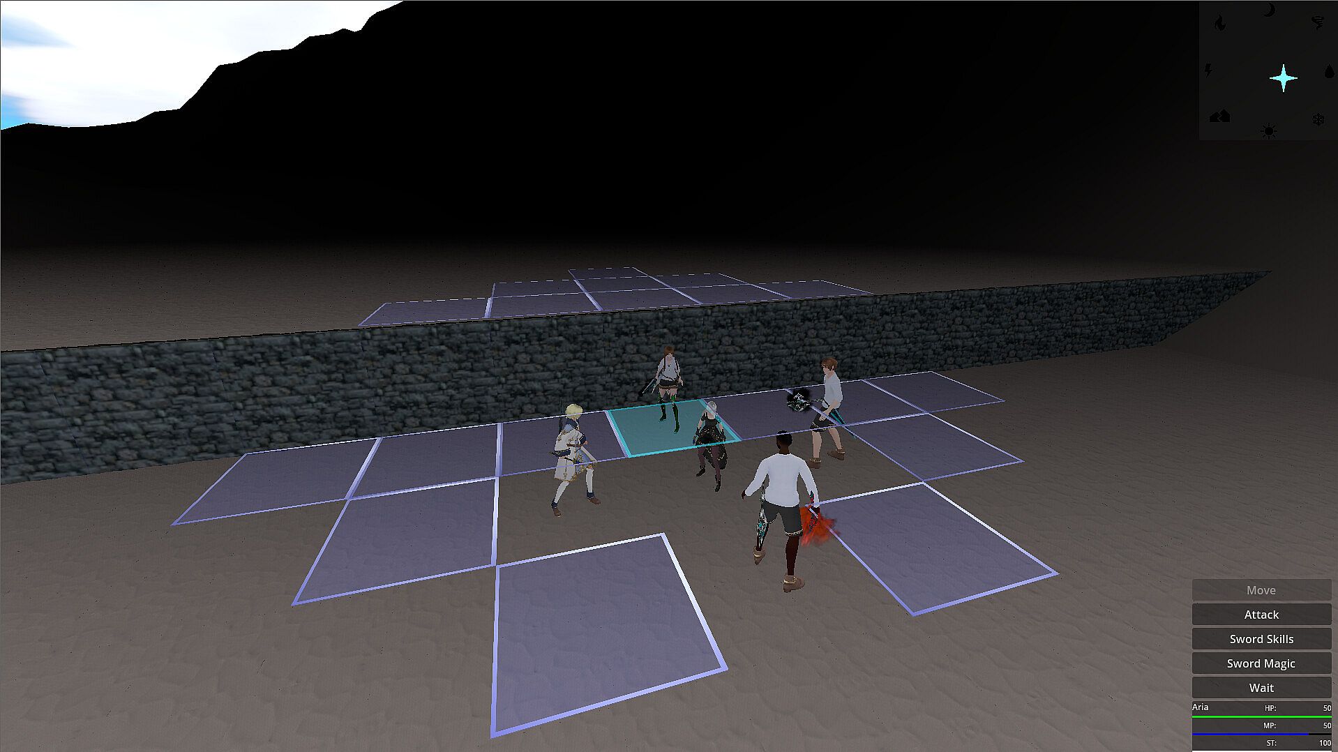 Combat Movement: Players move on a grid-based battlefield, with movement influenced by terrain, obstacles, and height advantages. Special abilities, such as jumping or traversing difficult terrain, add strategic depth.