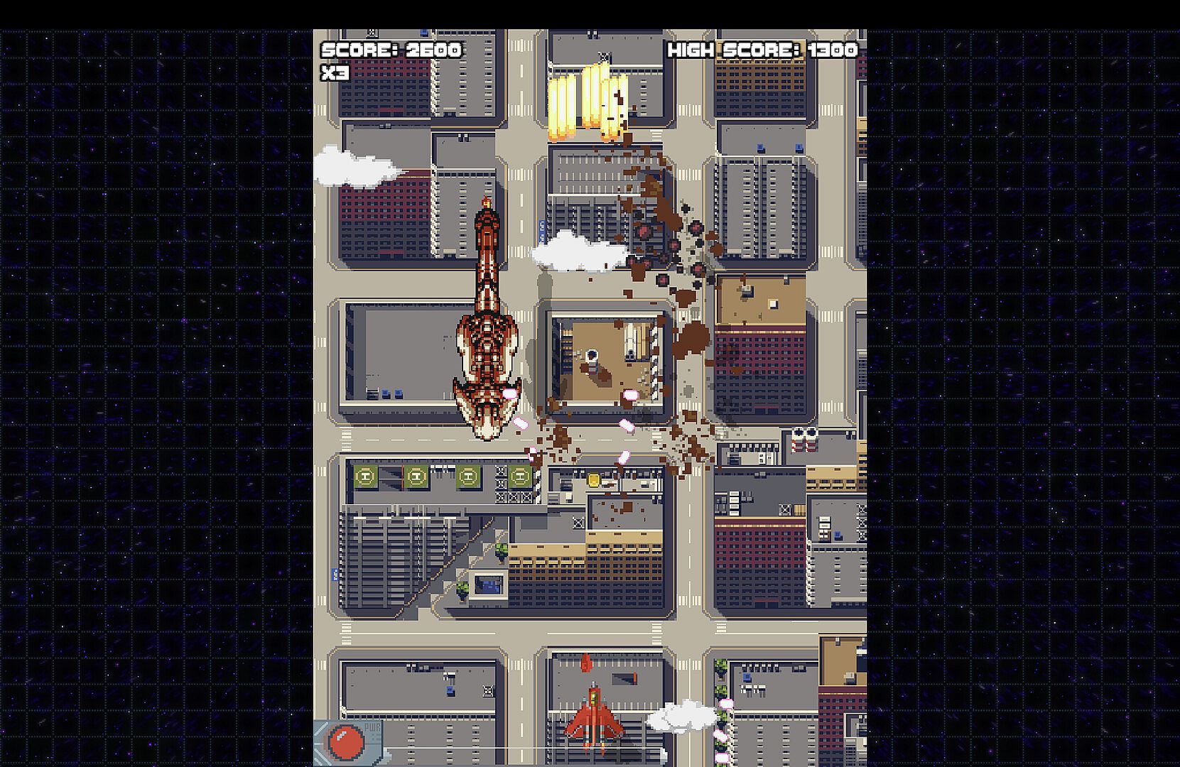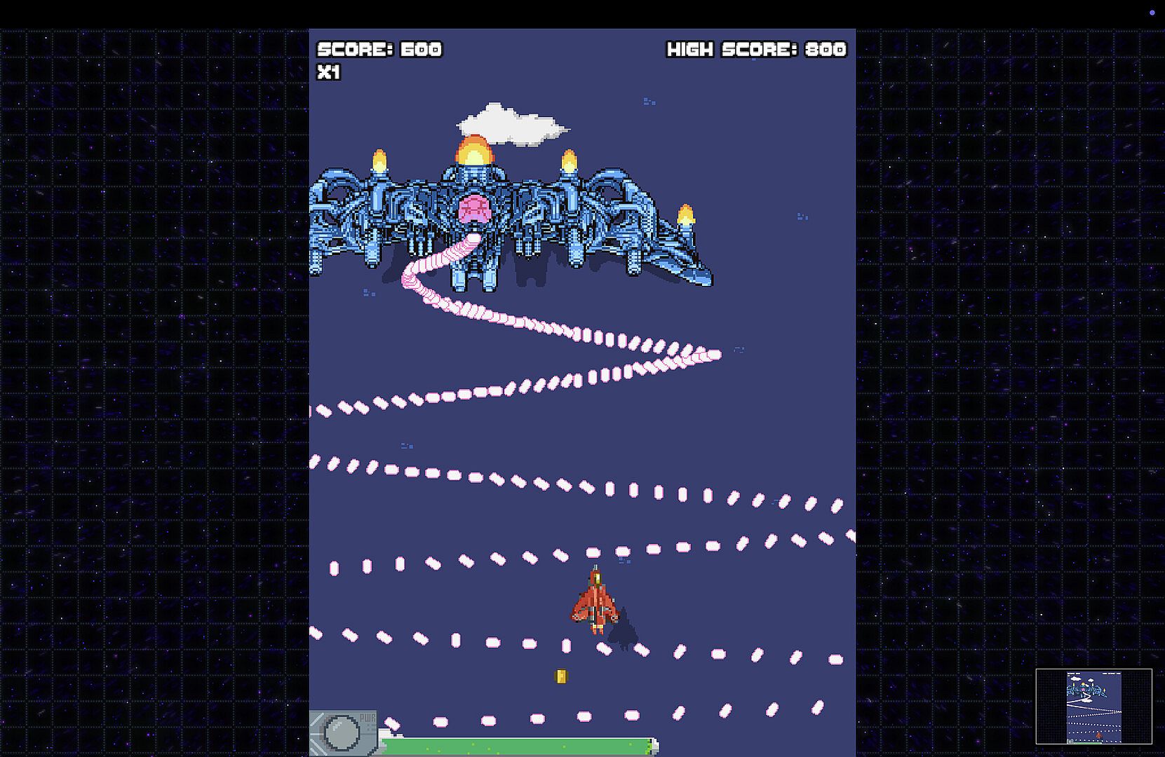 An alien invasion! The cat homeworld of Pantharis has fallen under alien attack, and you’re their last shot at survival. Take control of Aurora, a bobcat mercenary piloting a custom ship equipped with time-rewind tech. Lead her daring counter-offensive through five stages of frantic combat, shredding enemy swarms and squaring off against brutal bosses.