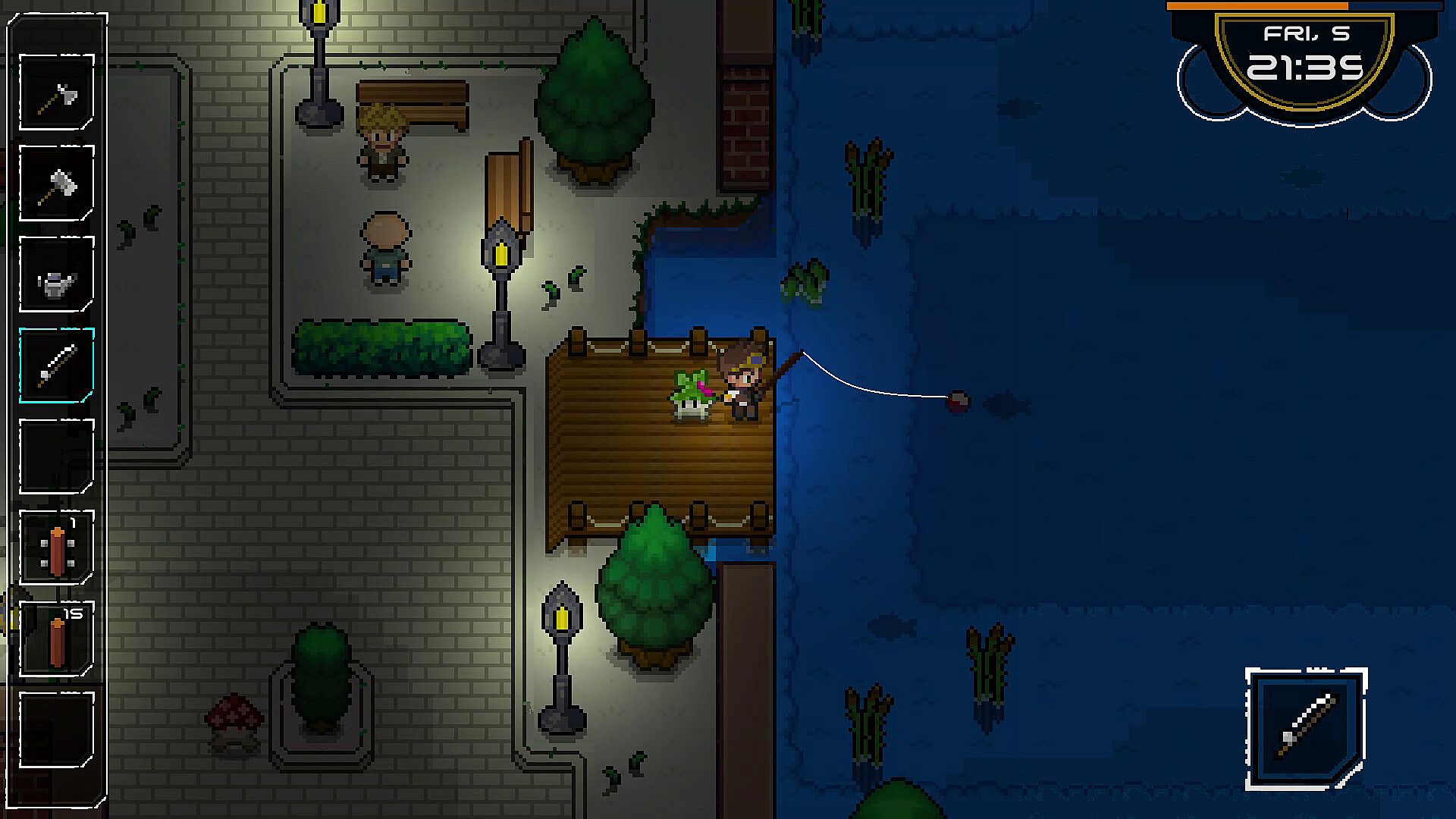 Head out into the world to gather raw materials for the farm and take a break while fishing, with a chance to catch over 20 types of fish (and then cook or sell them).
