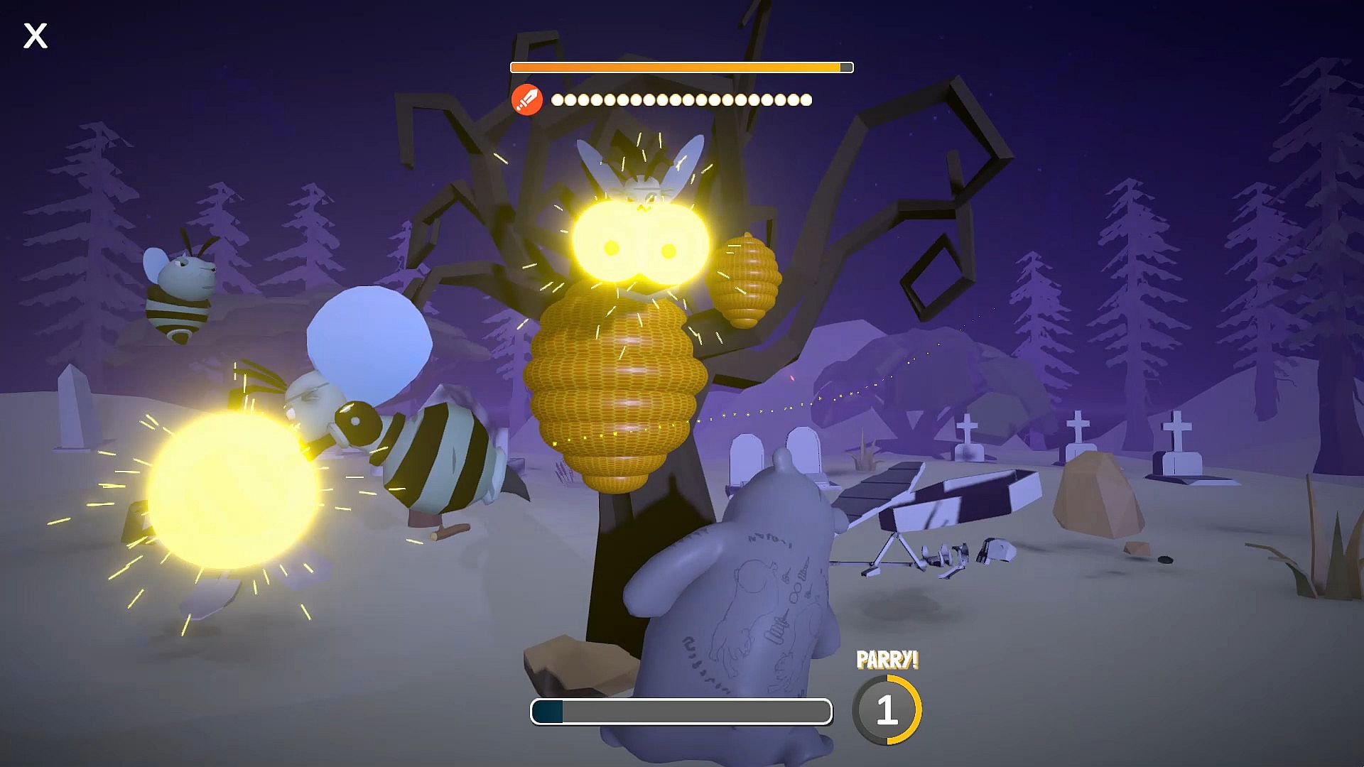 Use your body movement to attack the tree and fight angry bees until the beehive falls.