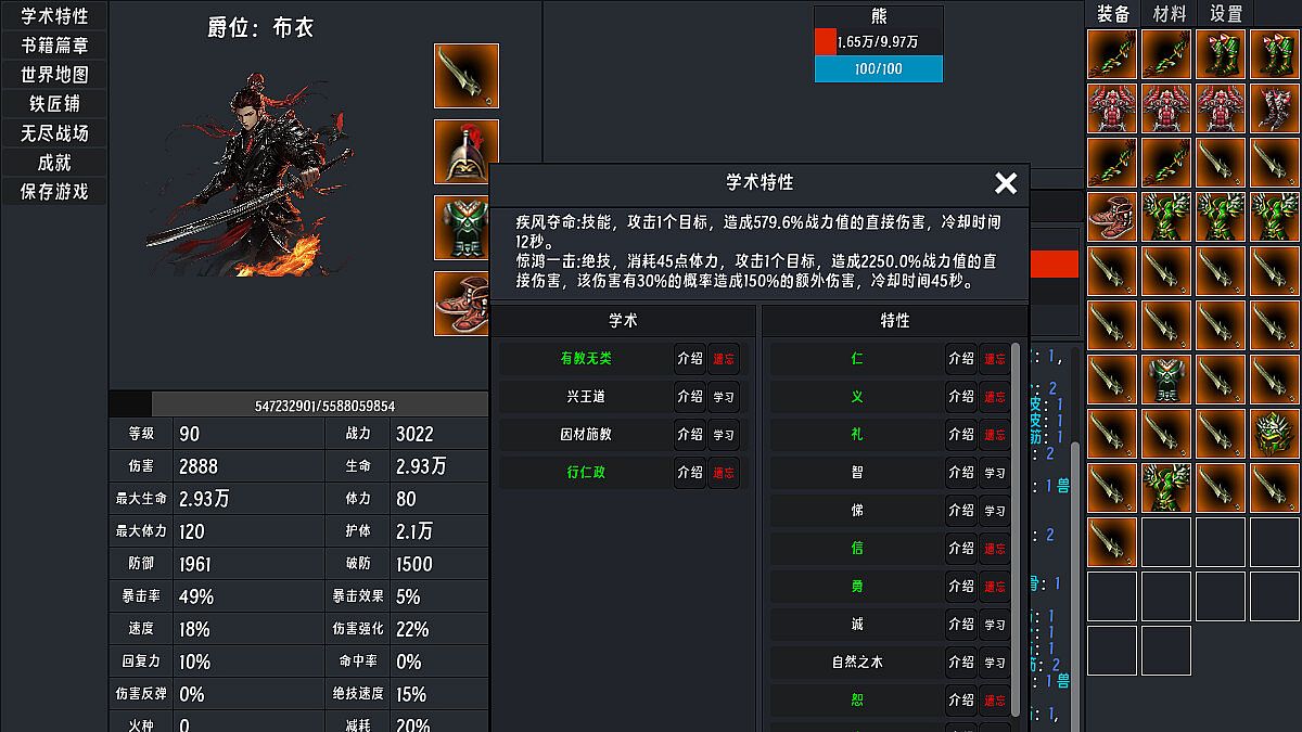 "Heroes Of ChunQiu" is a text-based idle game that encompasses a rich variety of academic schools, book chapters, items, and an equipment crafting system. Players can cultivate a single character, gather materials to craft equipment, configure academic schools, and explore book chapters to build their unique hero!