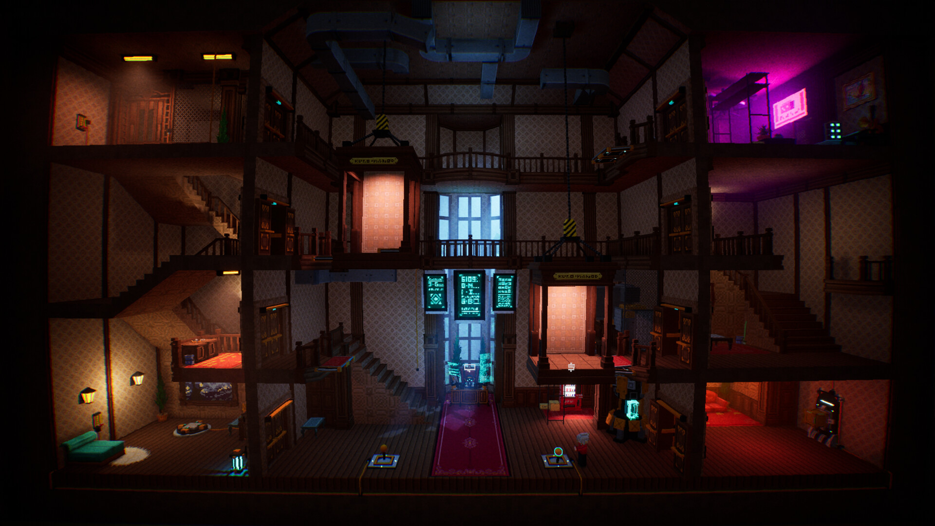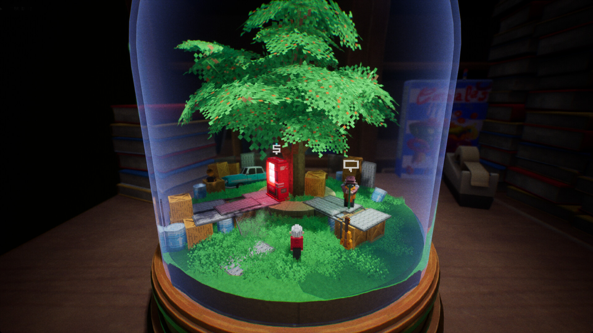 《GwenAndTheWinterGreen》 is a stylized side-scrolling adventure puzzle game where you play as a toy elf named Eddie, adventuring through various scene boxes, solving puzzles by manipulating gravity and picking up objects with different abilities.