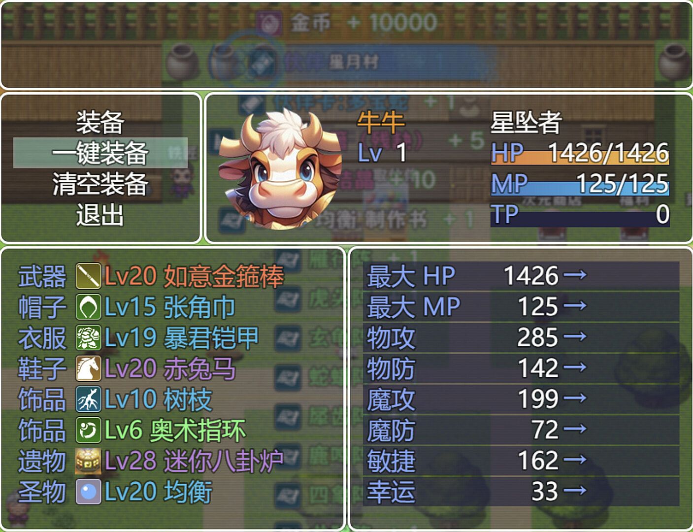 2、关于这款游戏,用RPGmaker MV制作的,回合制类型,这种玩法说远点类似仙剑奇侠传1,说近点类似大千世界、再刷一把,这种玩法很常规,没什么乐趣,主要还是靠剧情、音乐、刷宝牢人?搞黄色?在制作过程中使用了AI(立绘、音乐、文案)。