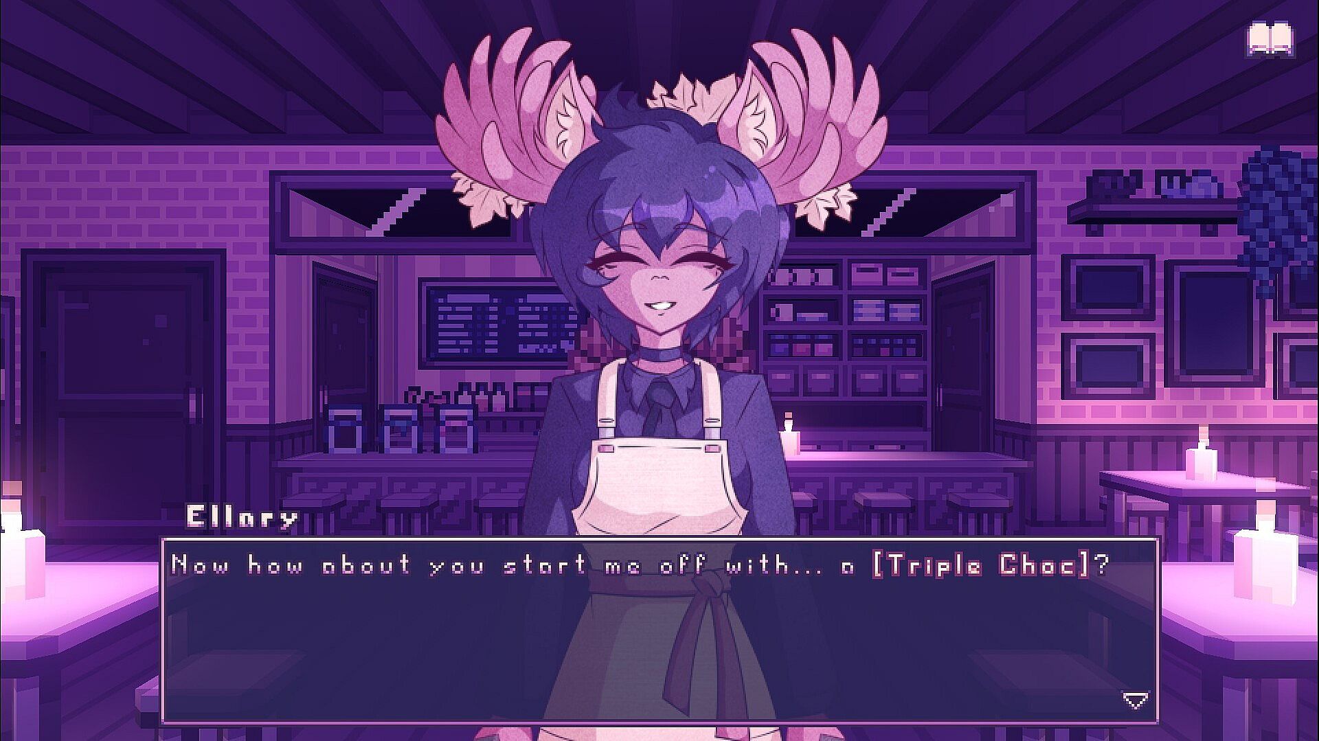 Cinderheat Chocolate is a cafe sim and yuri visual novel, in which you explore the world from the perspective of the fiery-haired Vivika.