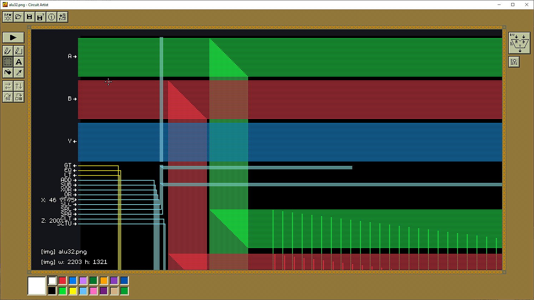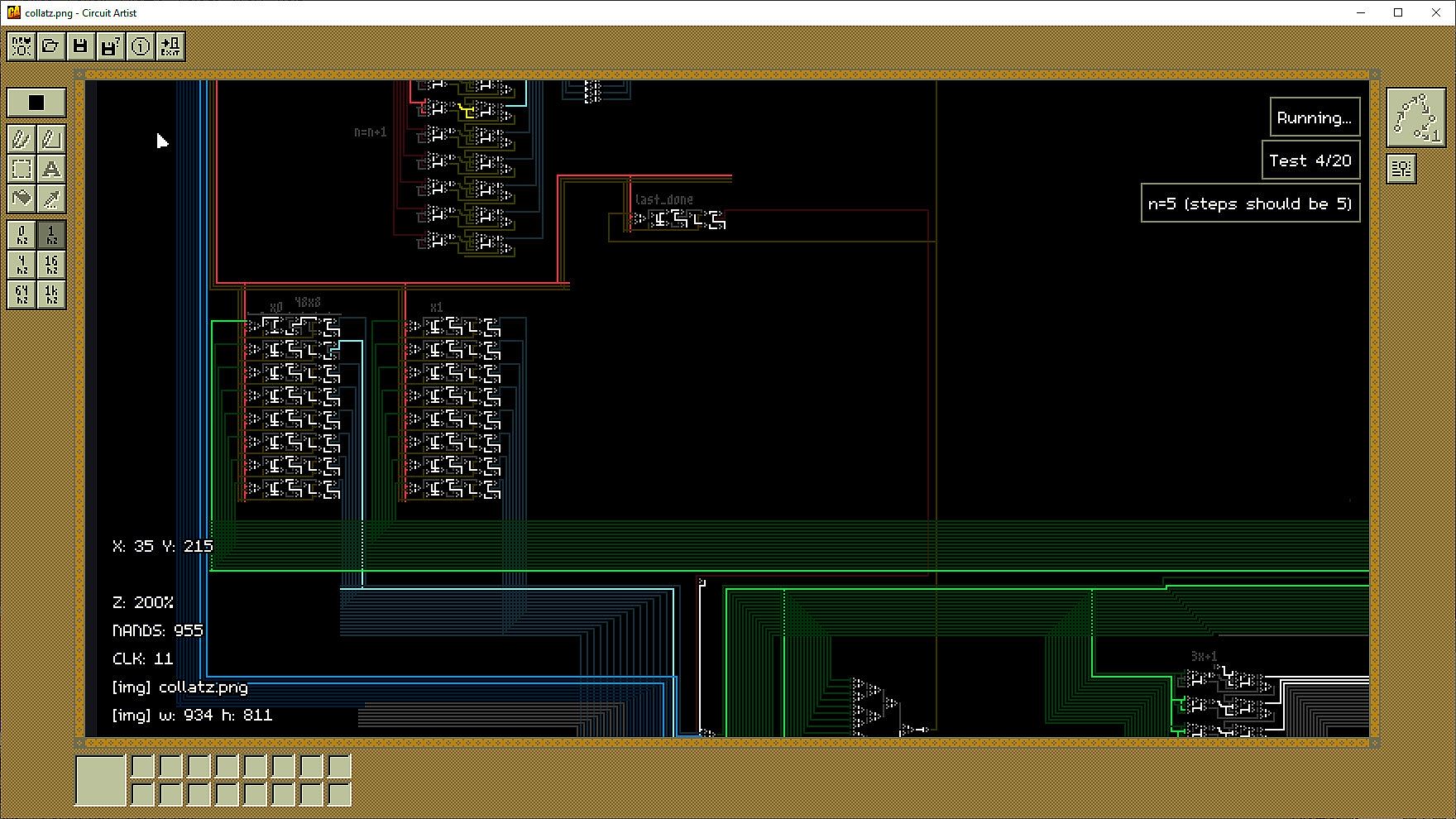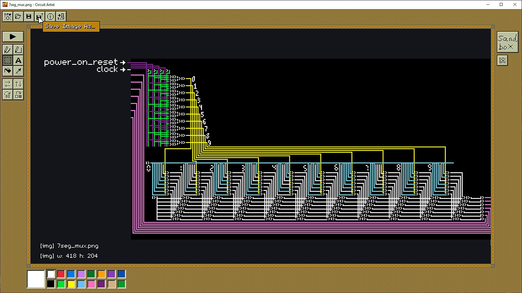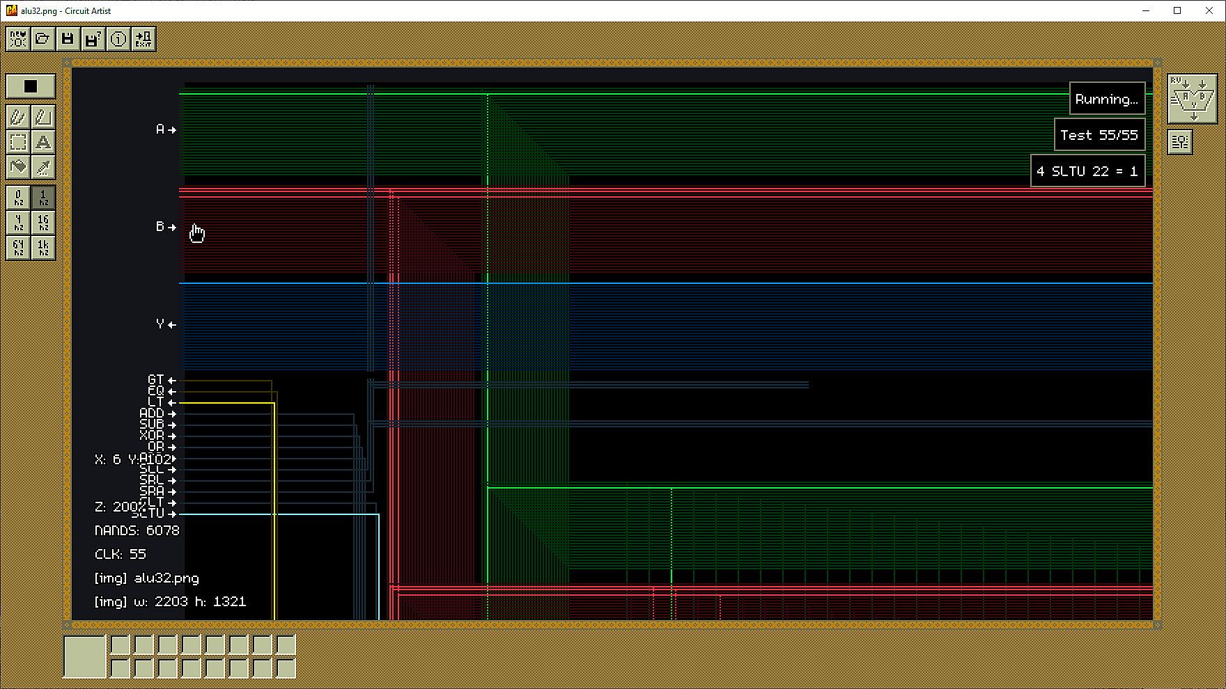 A circuit simulator where you draw everything. NANDs and pixels. Build gates, ALUs, CPUs — whatever you want. Watch signals flow, rewind time, optimize your layout. Circuits are just images.
