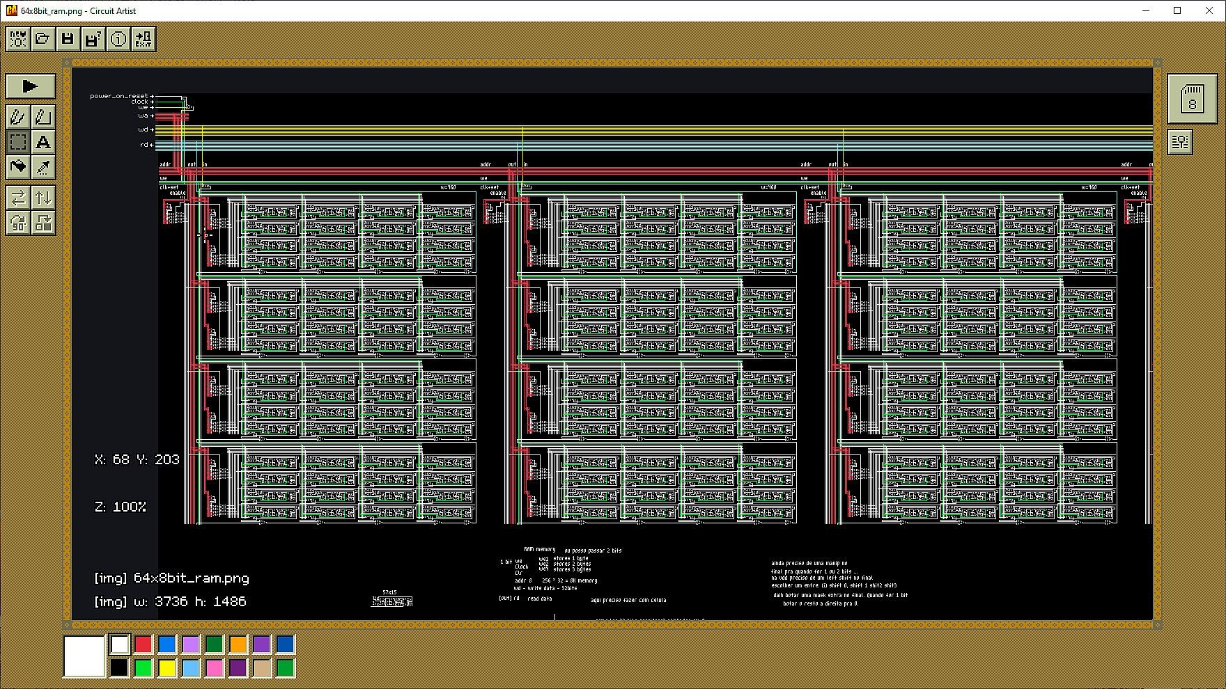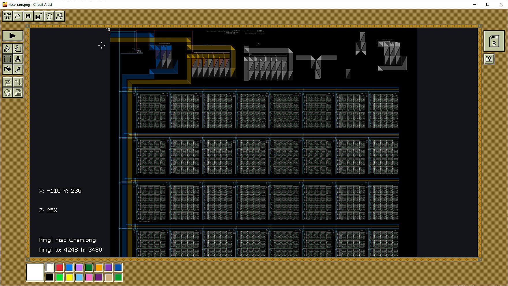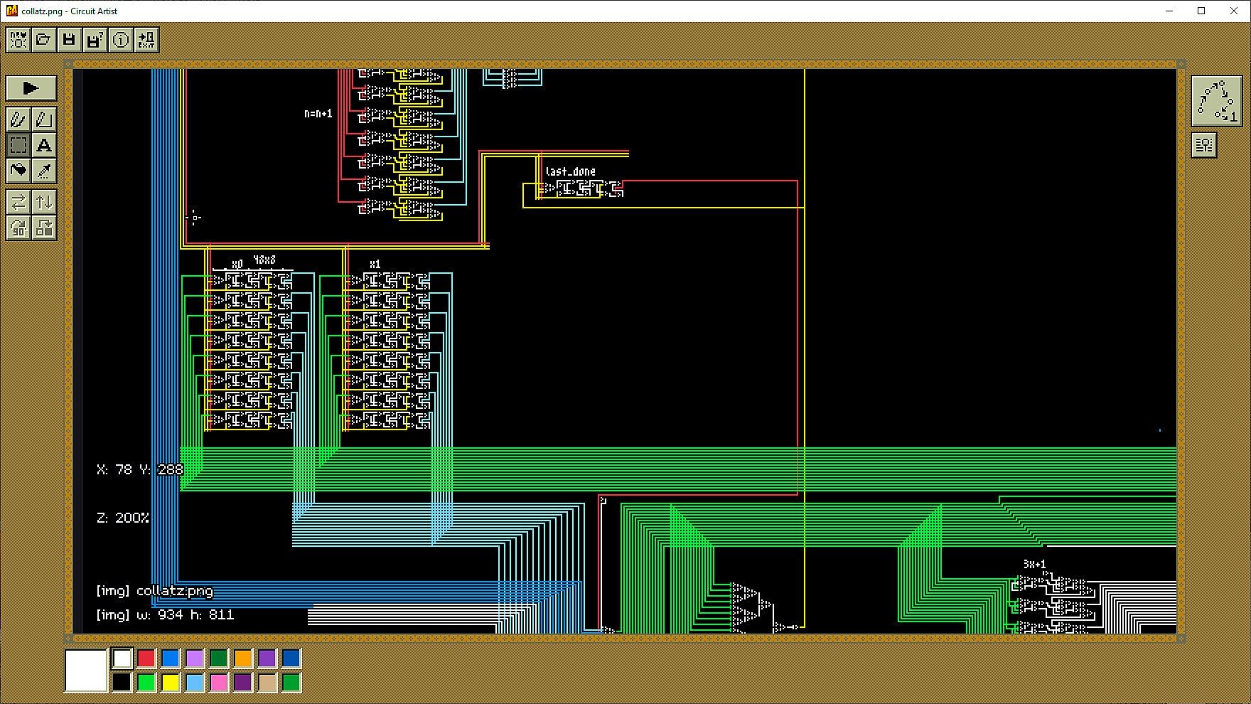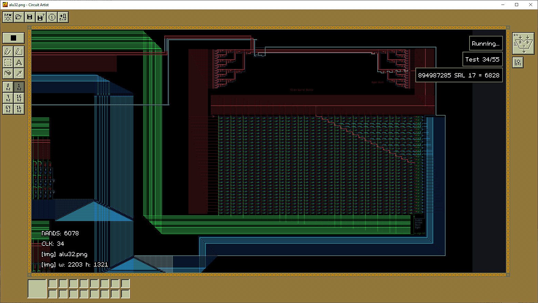 A circuit simulator where you draw everything. NANDs and pixels. Build gates, ALUs, CPUs — whatever you want. Watch signals flow, rewind time, optimize your layout. Circuits are just images.