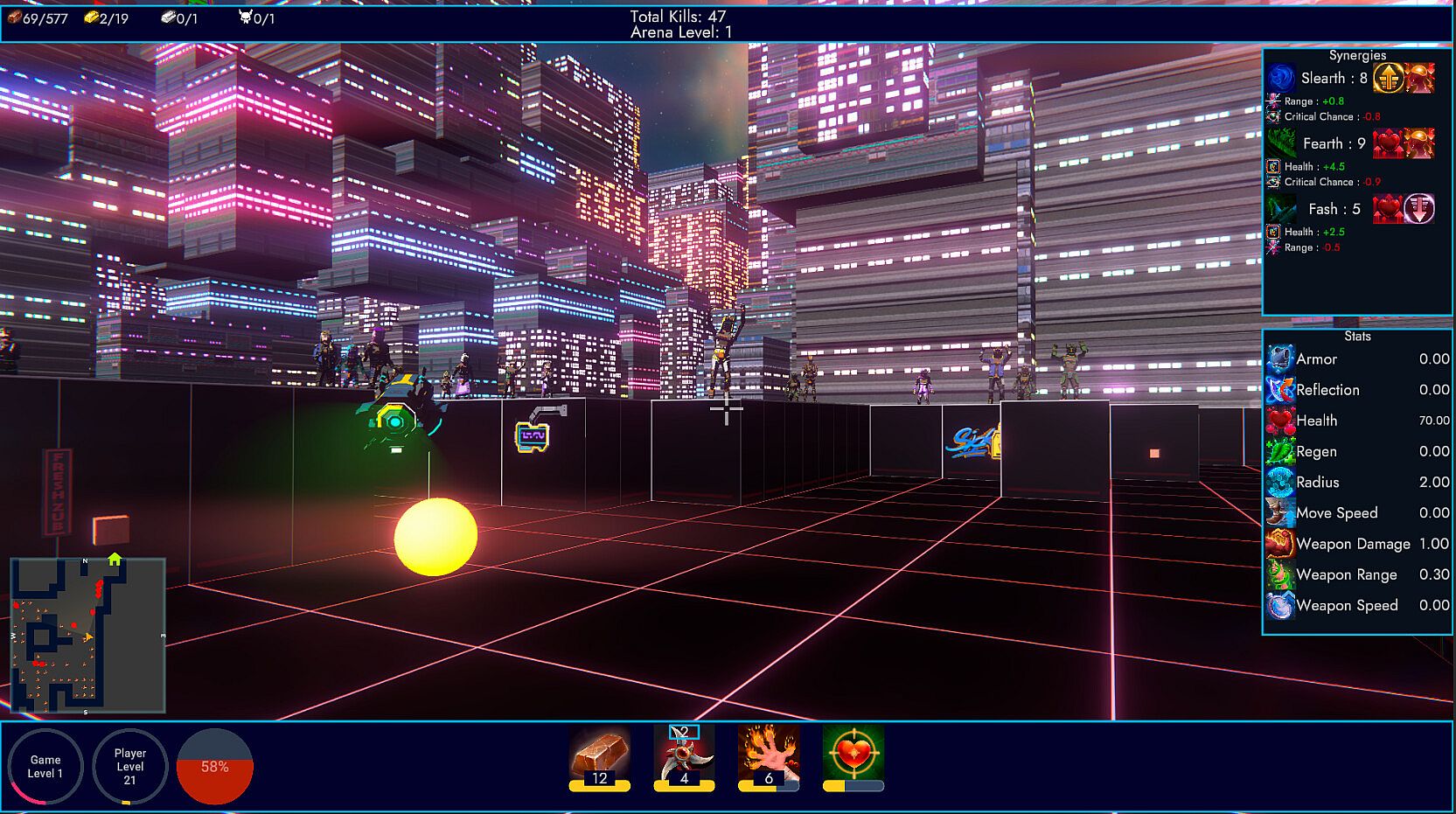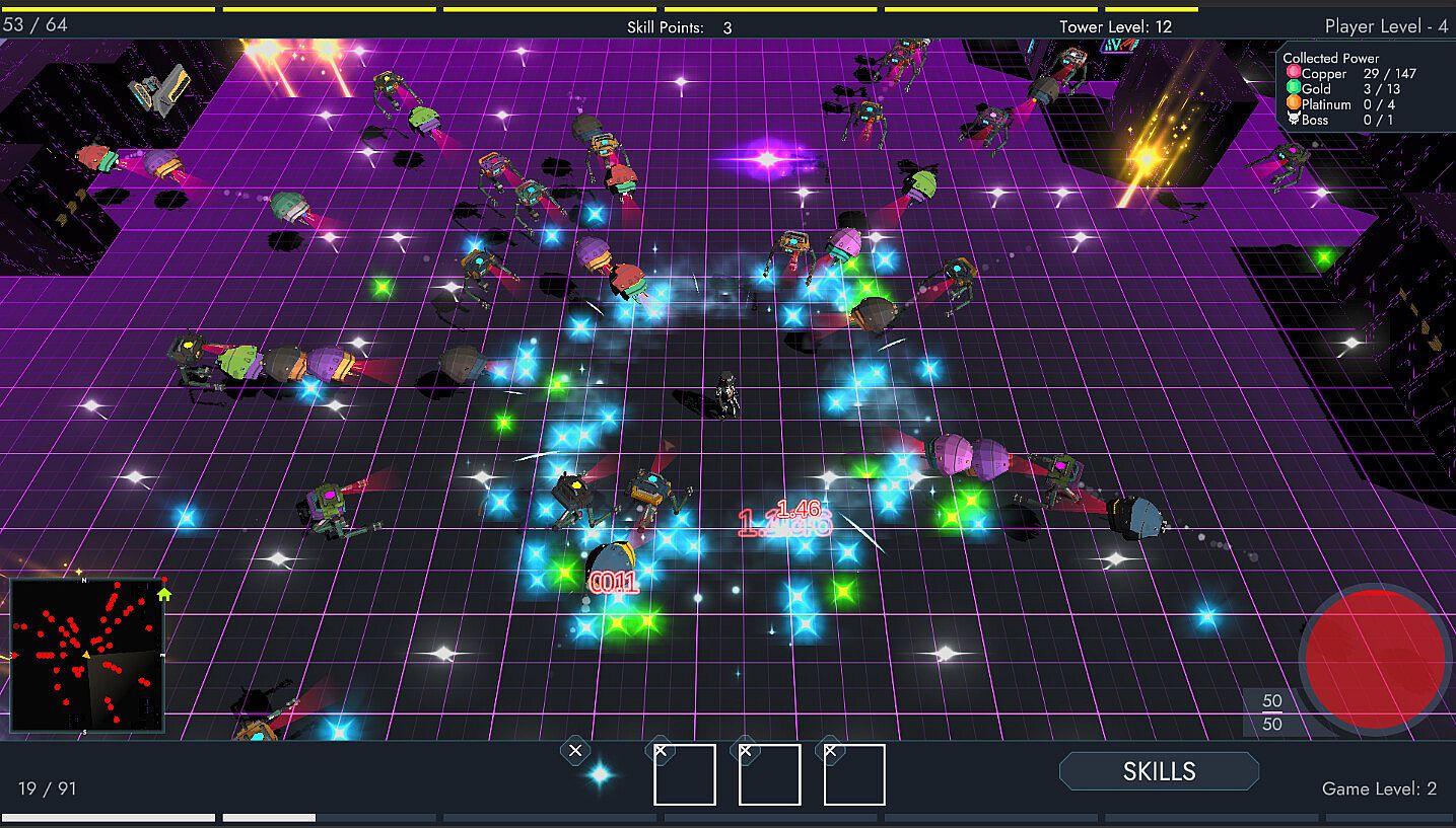 Your objective is simple: collect resources scattered throughout each level to unlock pathways and evade relentless pursuers. But be warned, every step you take brings you closer to danger, as the Arena defences tighten their grip with each passing moment.