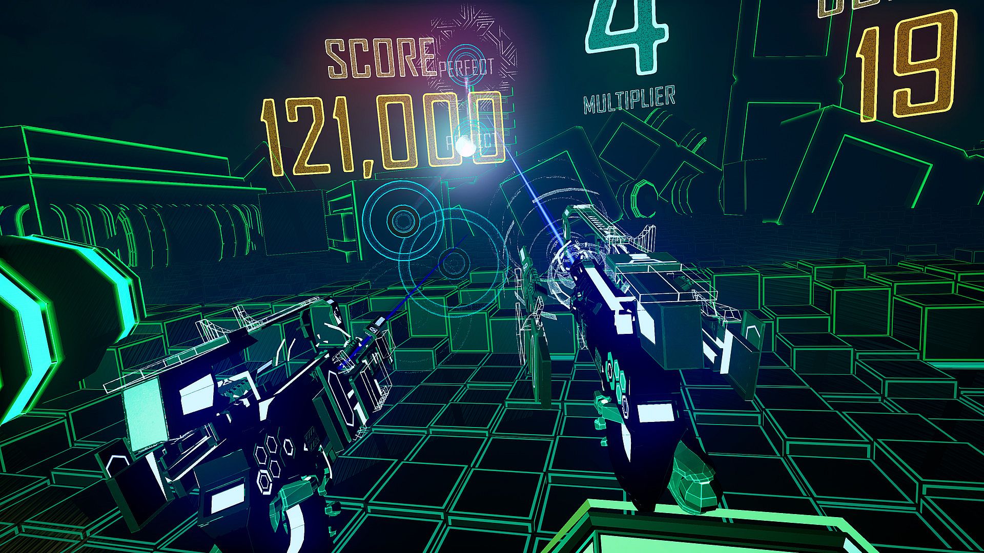 Grab dual guns in this VR rhythm game and shoot corrupted code to pulsing electronic beats. Players blast through six levels packed with heart-pounding action across three virtual landscapes. Original EDM tracks drive the free-to-play indie experience on PC.