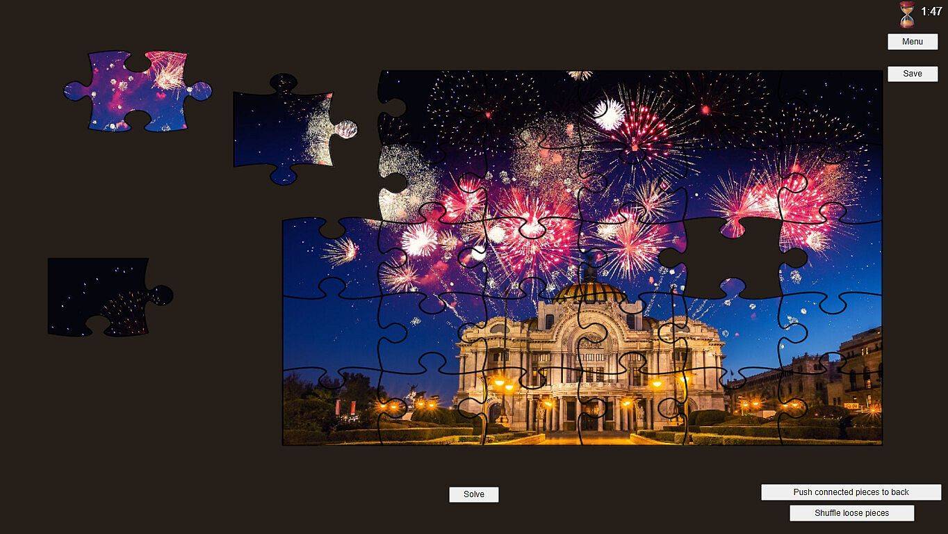 Do puzzles in a new puzzle way! Advanced puzzle layout and involving gameplay will help you to relax after a hard-working day. The player can choose to play with 30, 42, 117, or 285 pieces.