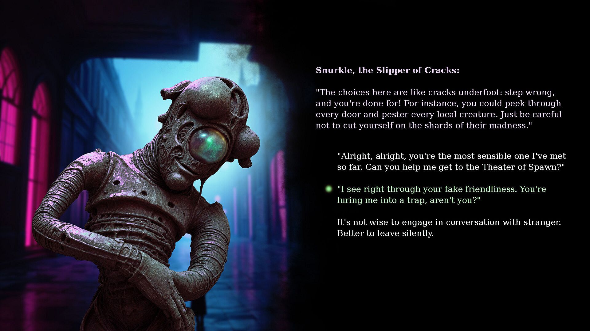 City of Stolen Worlds is a game with a rich narrative and unique locations. It’s an adventure game with elements of a visual novel: you’ll explore the City, interact with its inhabitants, and make decisions that lead to unexpected consequences and multiple endings.