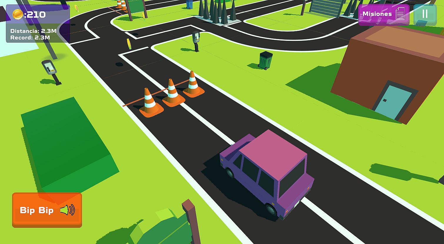 In this game, you are a mini car that navigates through a city, collecting coins, unlocking cars, and completing missions.