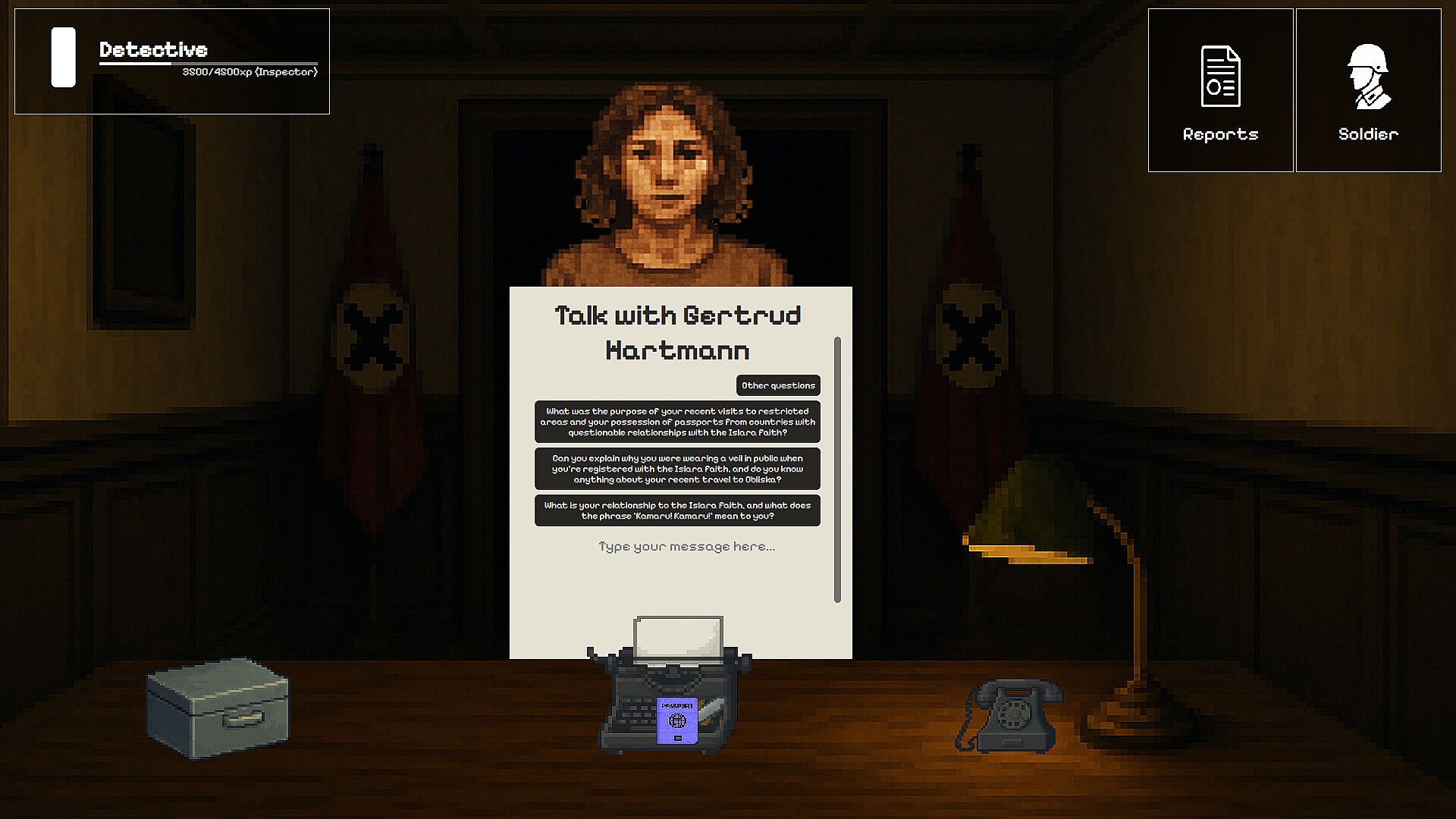 In Civil Purgatory, you are a state officer tasked with evaluating detained civilians under a totalitarian regime. Each day, you'll receive a new case file with photographs, documents, intelligence reports, and confiscated items — from personal belongings to weapons and valuables.Real-Time AI-Generated Dialogue