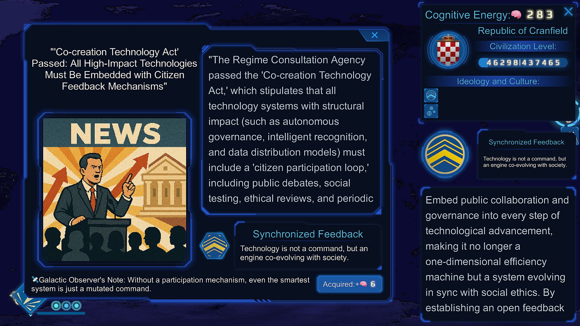 This indie game blends philosophical reflection, institutional simulation, and minimalist interaction to construct an experimental world focused on civilizational evolution and the consequences of choice.