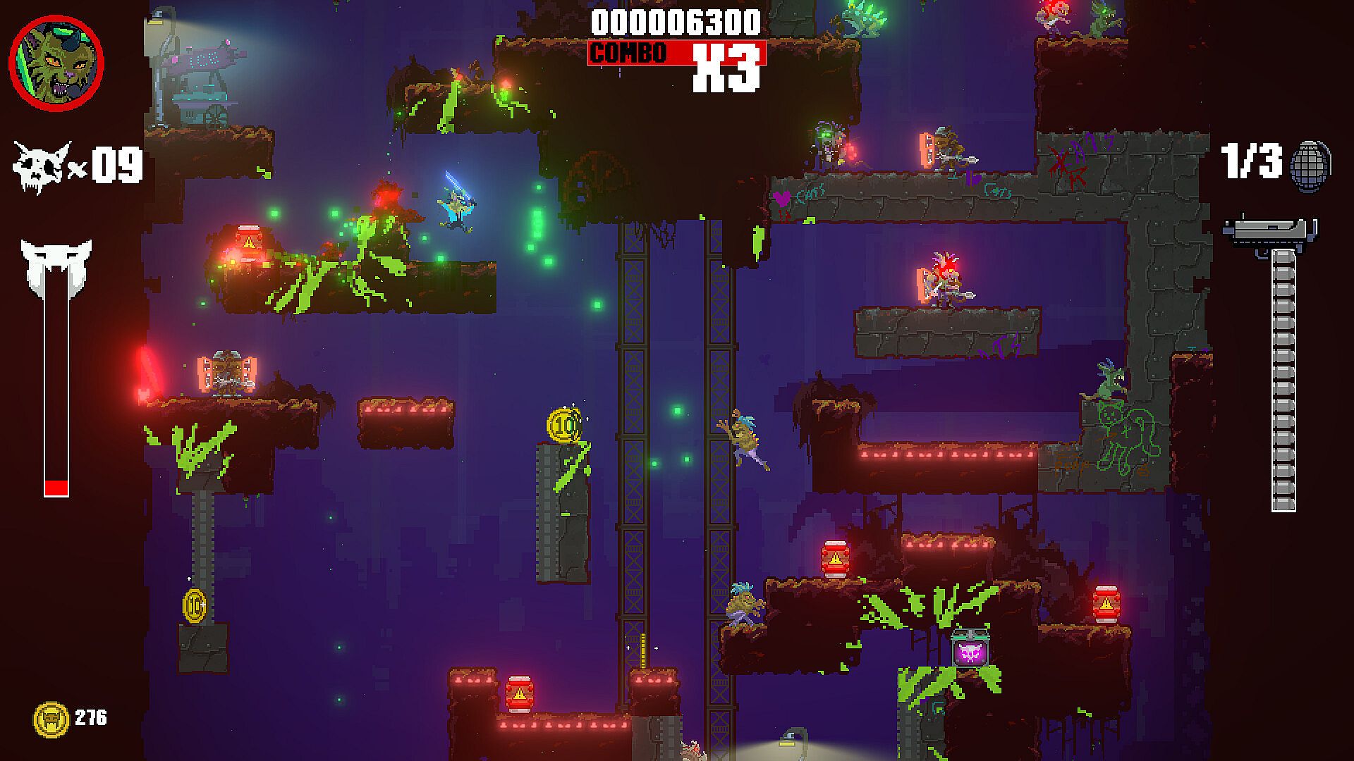 Choose from nine fierce cat characters, each boasting unique base stats, primary weapons, and powerful special attacks that recharge based on your performance (tracked by a combo counter). Roam through five distinct zones, the first four of which you can conquer in any order, each designed to challenge you with specific enemy types, from wide-open arenas for ranged combat to tight quarters for intense melee brawls.