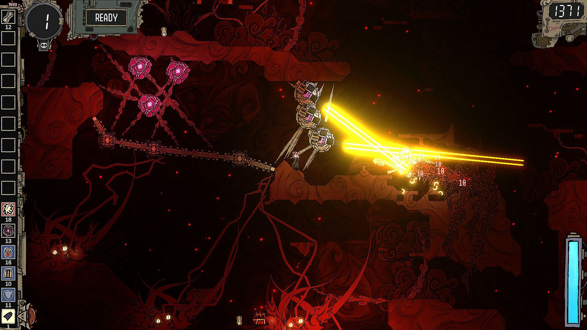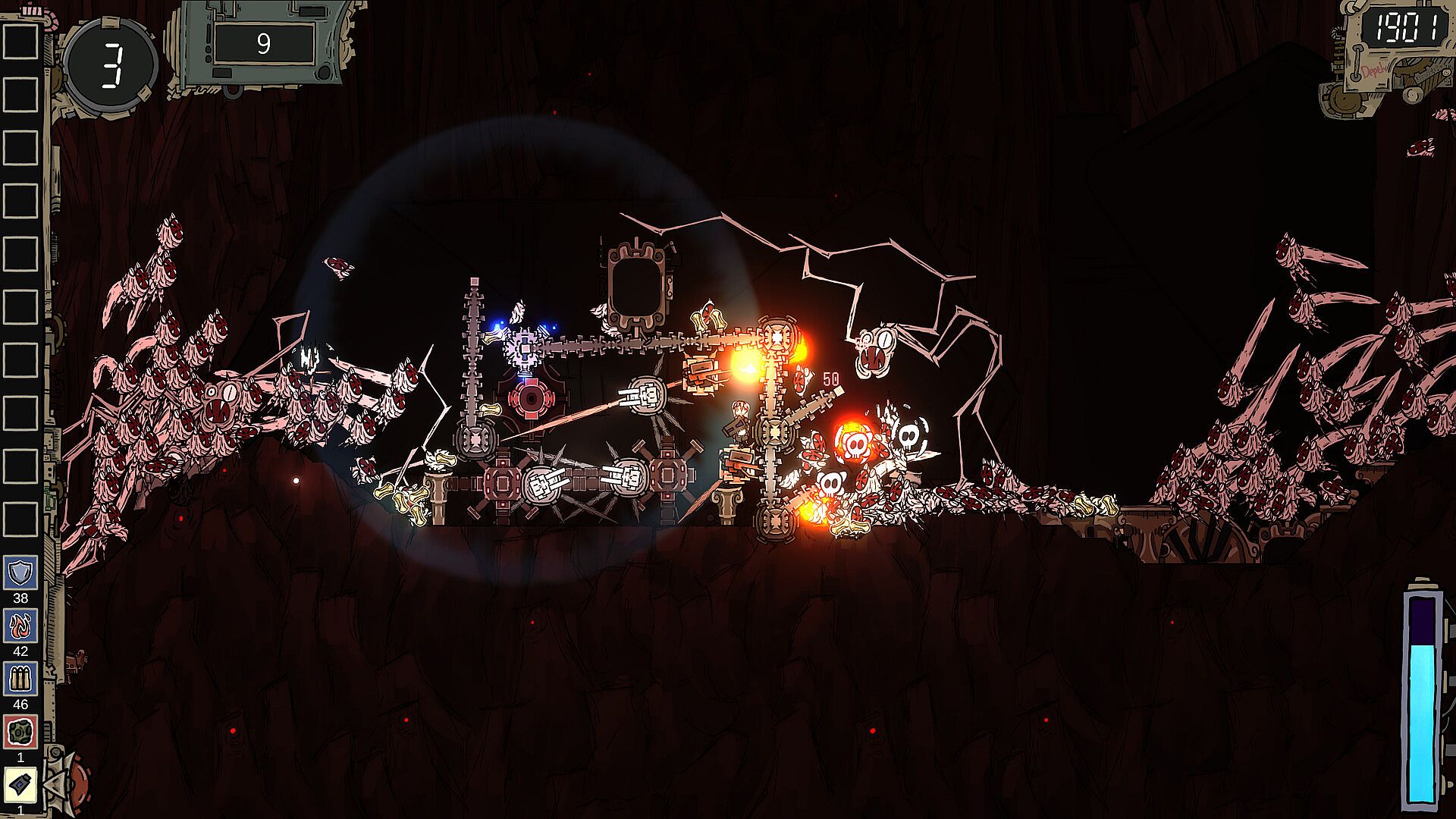 CleanFall is a sandbox survival roguelite that combines ship-building, tower defense, and a unique alchemic turret system. You must leverage whatever you can find to survive in this dynamic underground world!