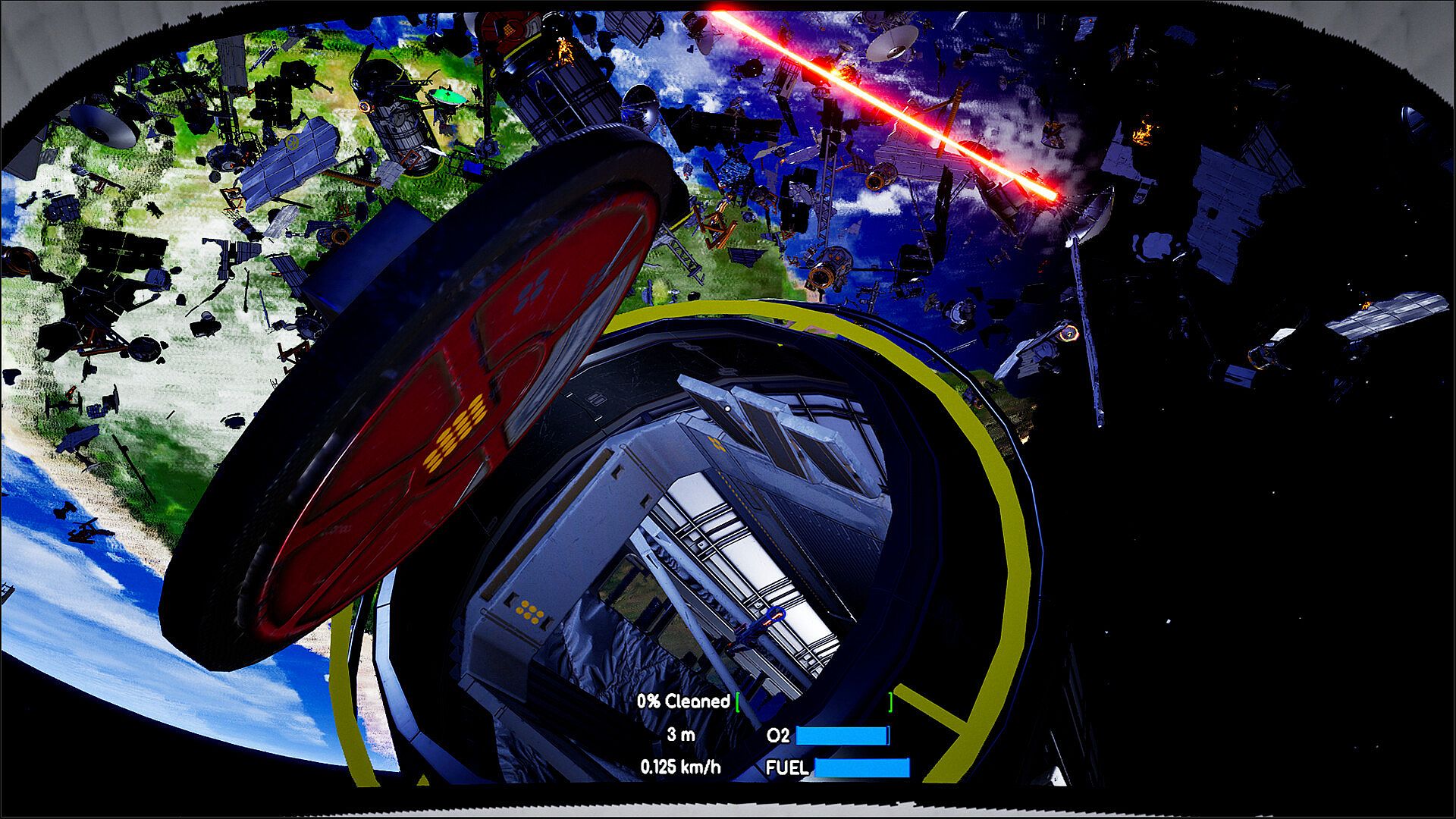 Cleaning the Space is a game where you clean up space debris using various tools based on physics interactions in zero gravity. Refuel your oxygen and fuel, avoid obstacles, and clean the universe while solving the Kessler syndrome.