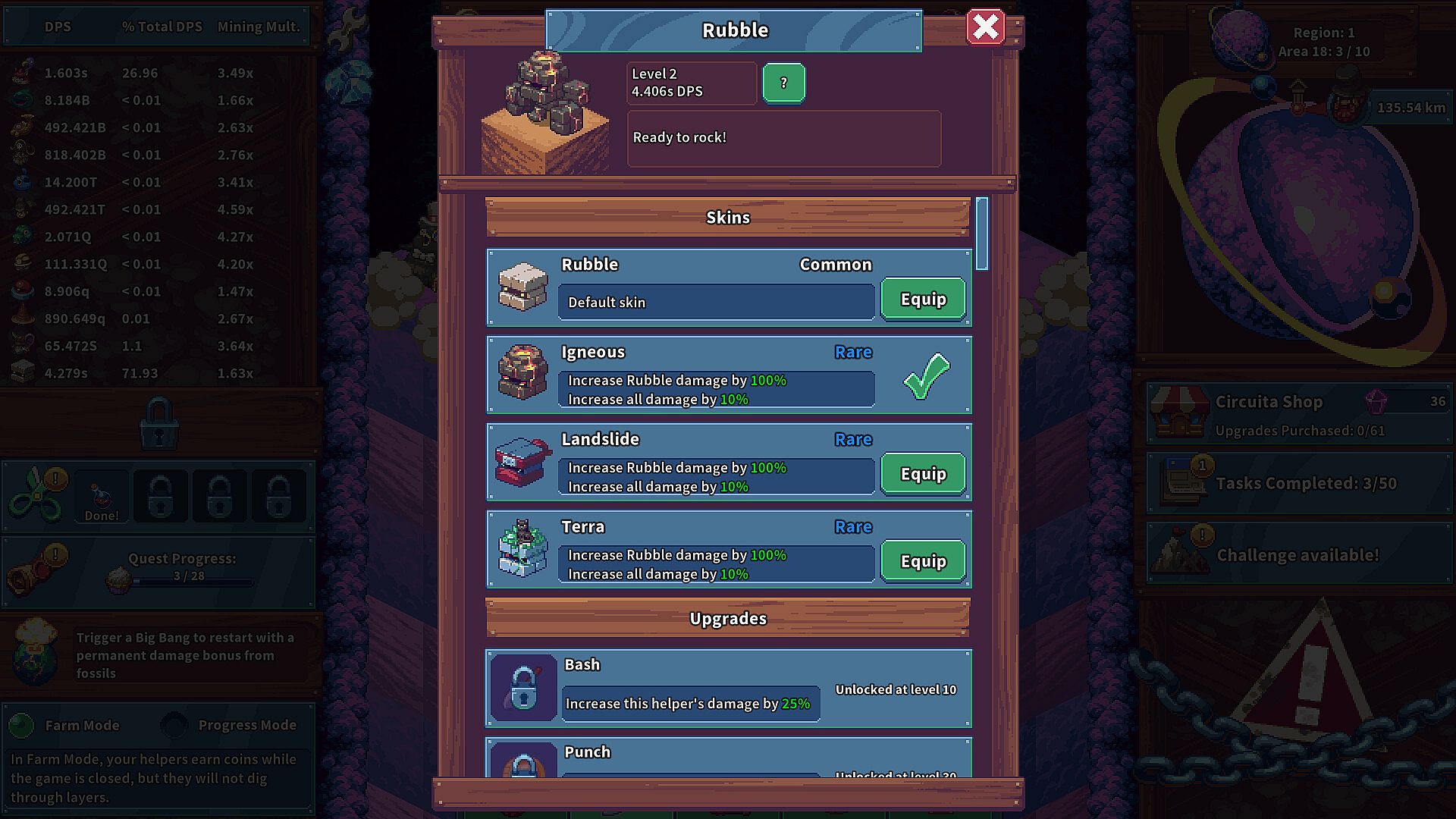 Recruit a zany cast of diggers to help you reach the core of each planet in this Idle Mining Game!