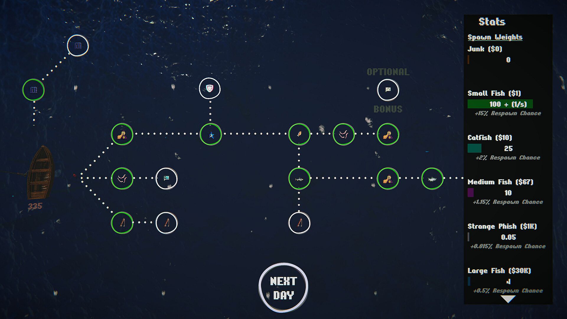 • Catch fish/sharks/junk to earn currency