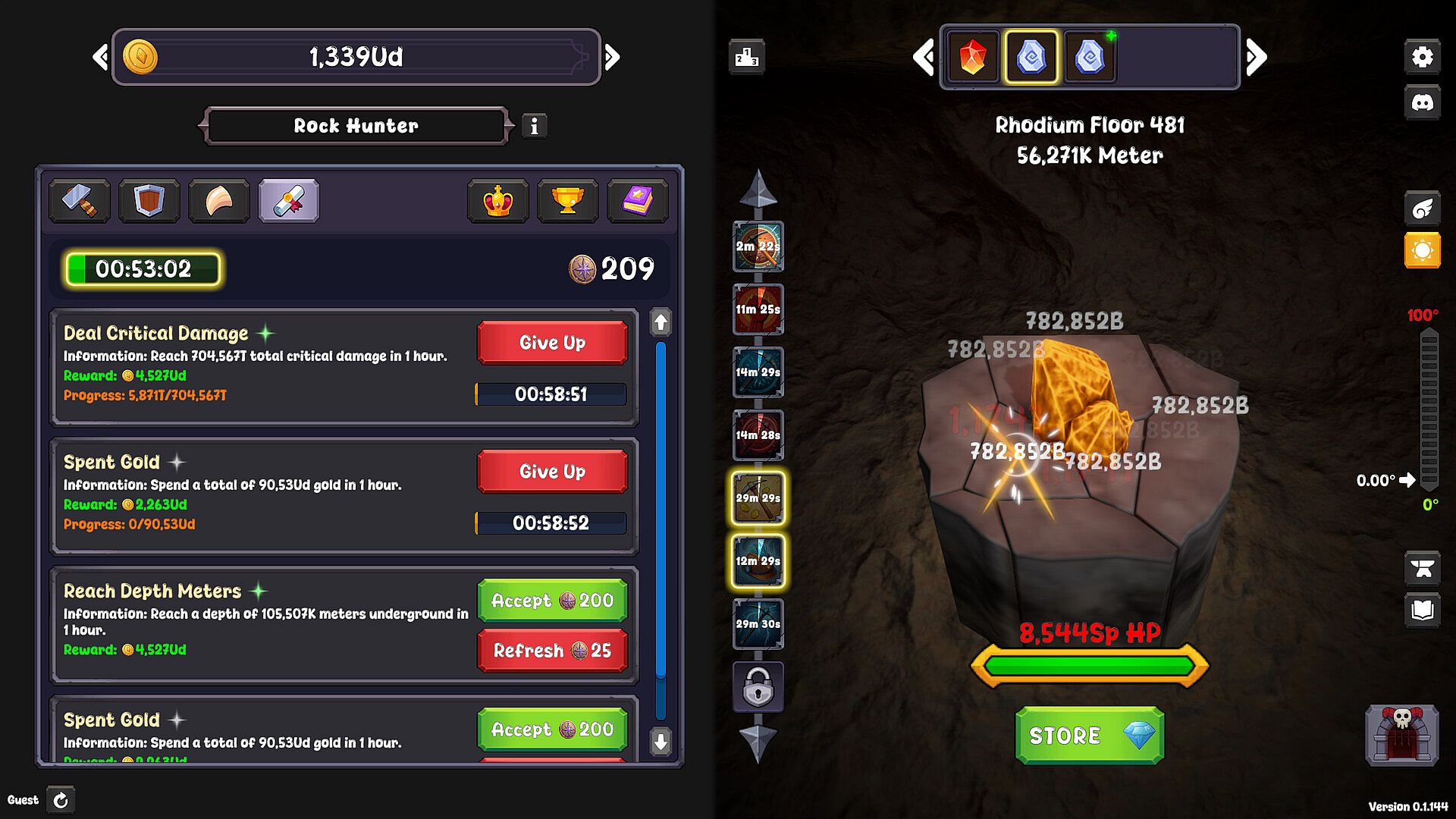 As you descend, difficulty increases, temperature rises, and rocks become stronger.