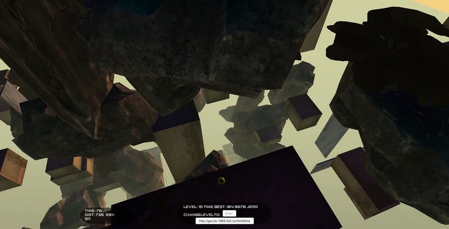 time-attack - reach the highest block(the one with a blue spinning cube over it same as the one at the base) as quickly as possible.