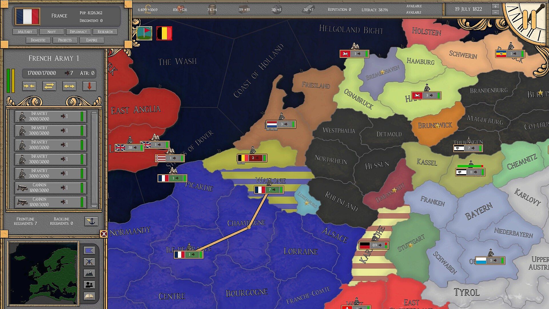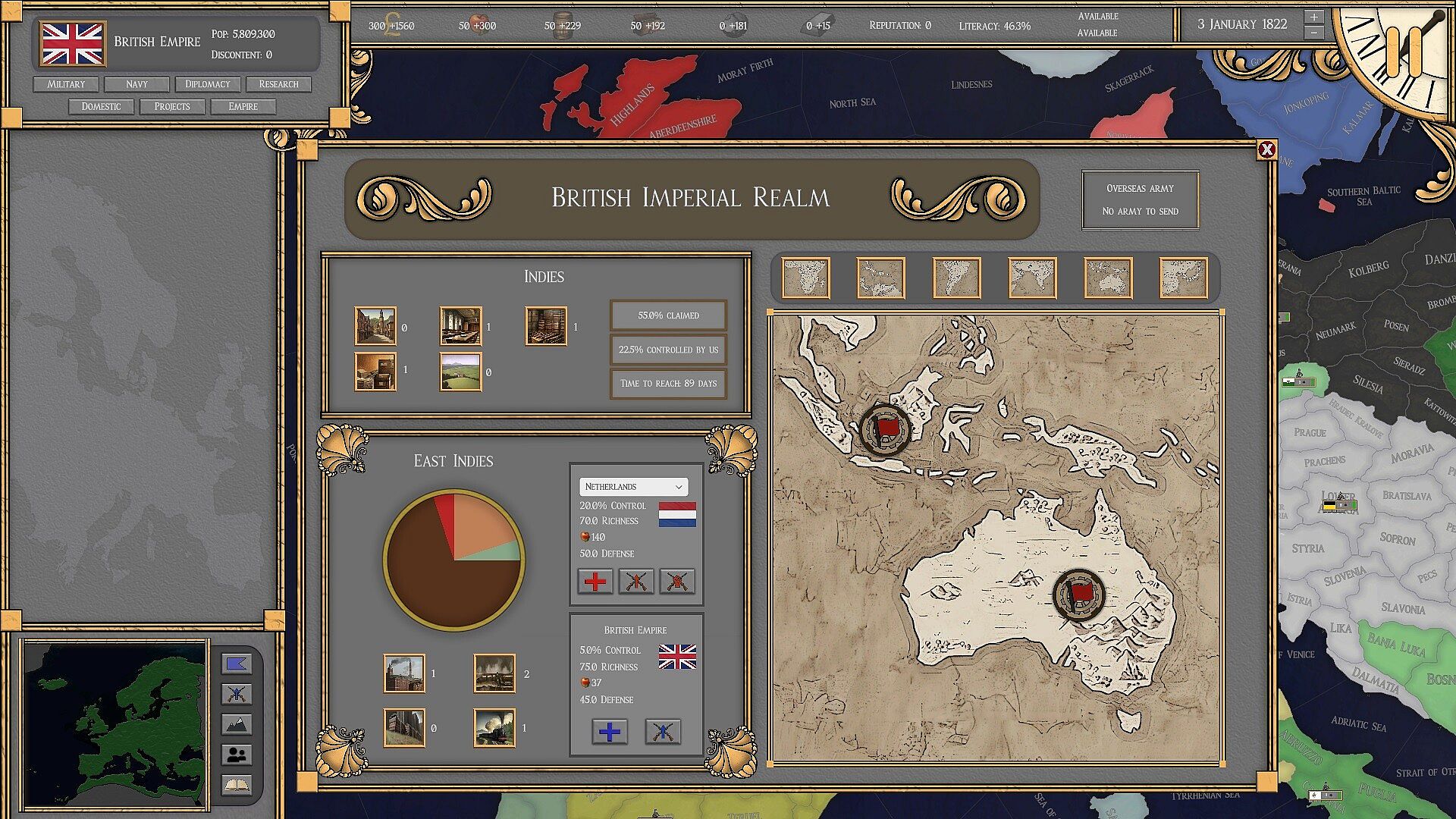 Fight either at home or abroad among overseas areas to secure resources flowing to your country. Send armies overseas to capture territory or fortify your existing nation, improve your domain through development, and more.