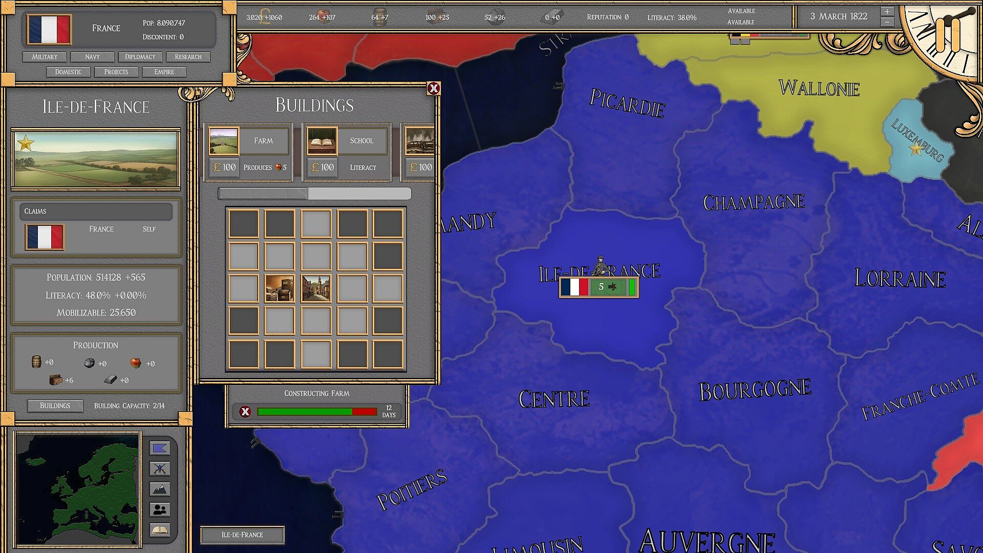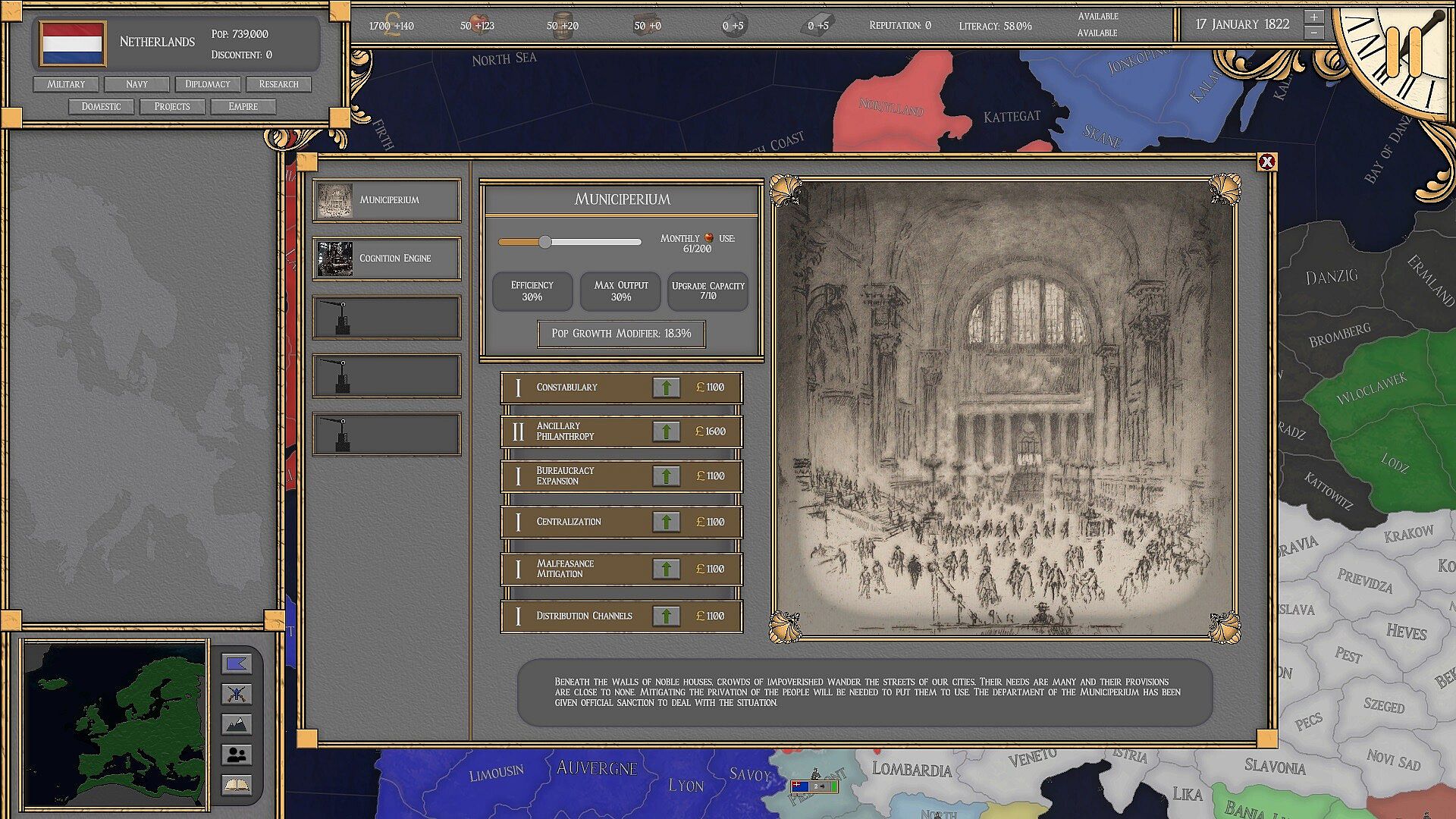 Help your people prosper by ensuring a stable flow of resources through domestic projects, buildings, and overseas expeditions. Conduct research on over 70 technologies inspired by the 19th and 20th centuries to unlock additional advancements.