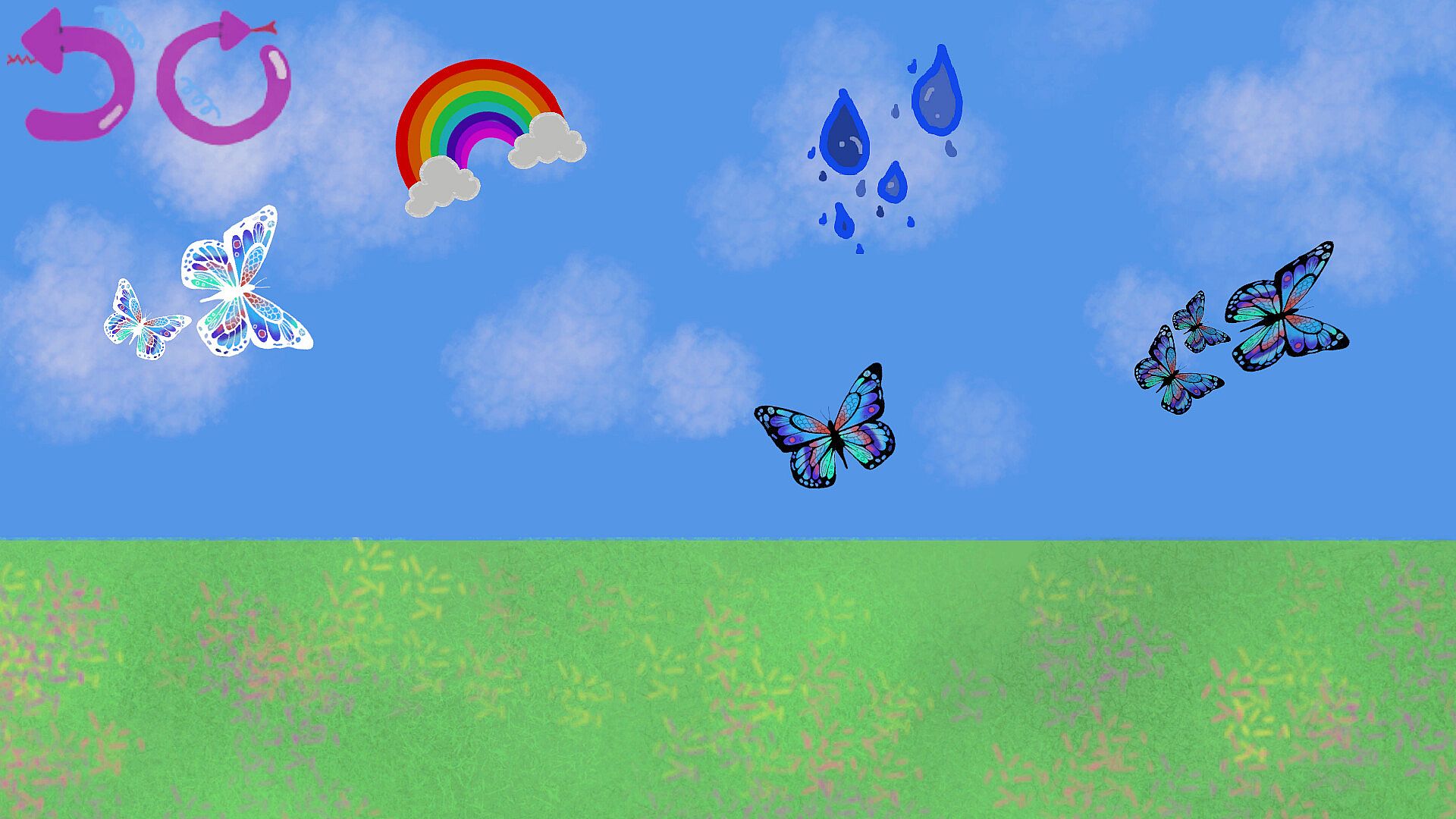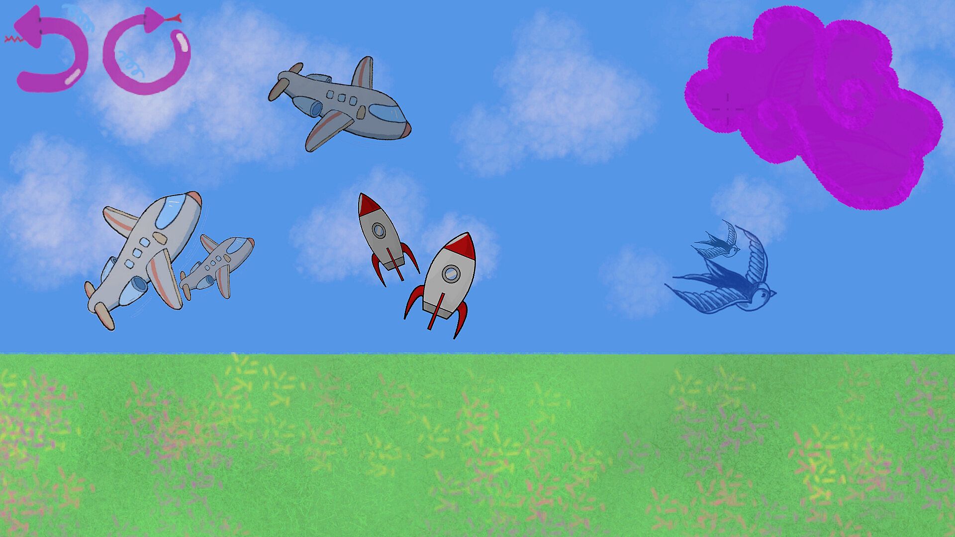 Gameplay is focussed on hovering over the clouds to highlight them and popping the clouds by clicking them and uncover the hidden image below, once all of the clouds have been popped there is a reload button(loads new clouds to pop) or back button(return to main menu shown in image).