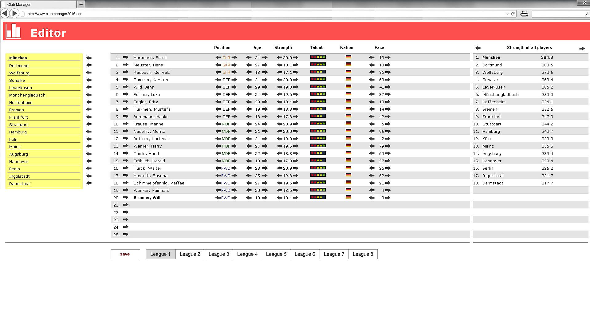 Note: Even though the game includes almost 200 soccer nations, Club Manager focuses primarily on the German football league system.