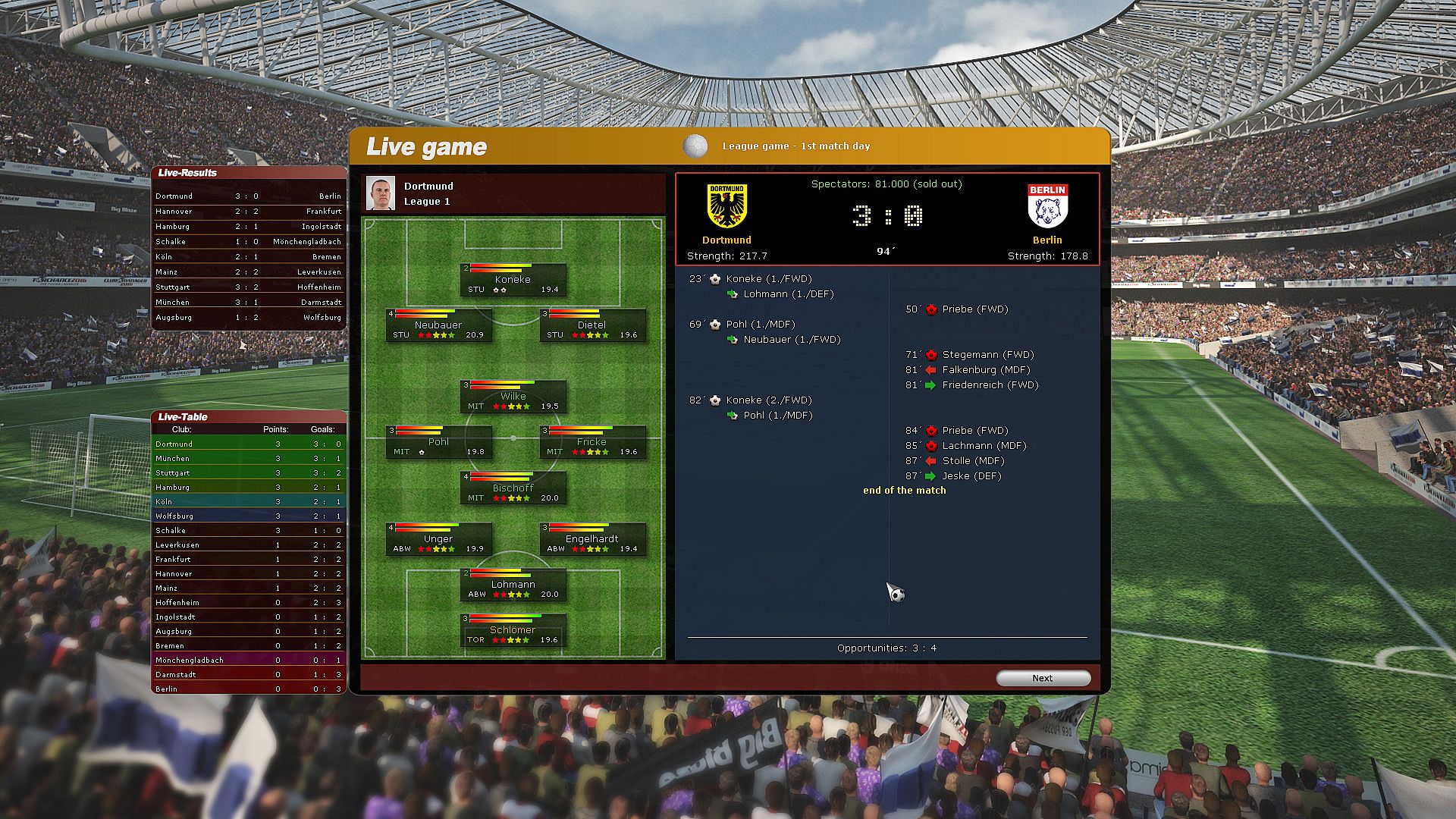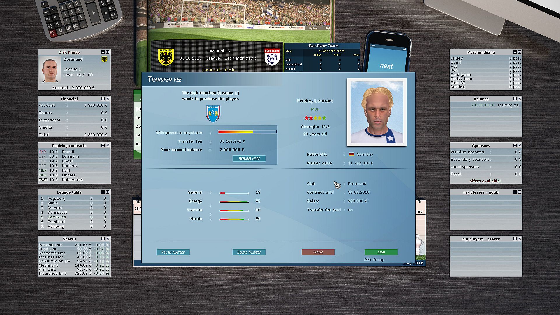 You are the manager: Whether it's tactics, contracts, sponsors, or stadium upgrades: Determine the future and the success of your club.