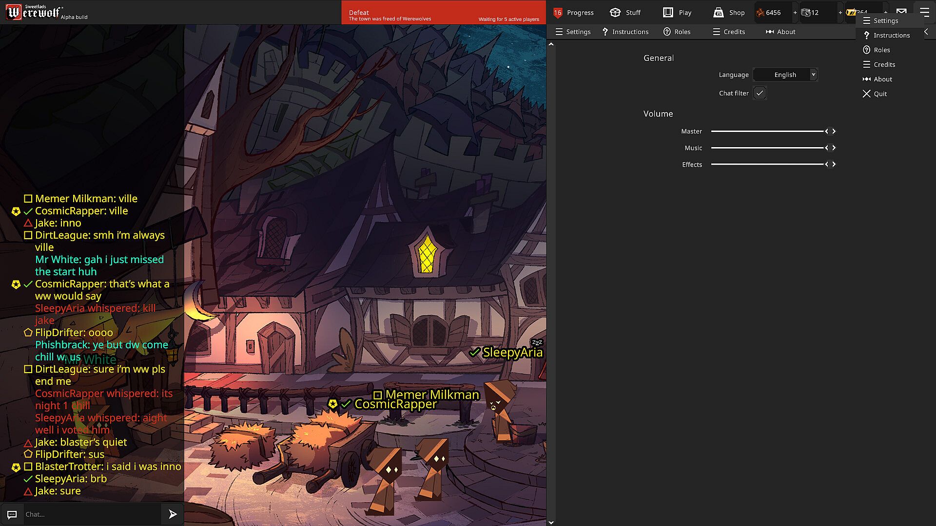 Club Werewolf is split into day and night phases. During the day, vote who you think is a werewolf. At night, roles can use their abilities.