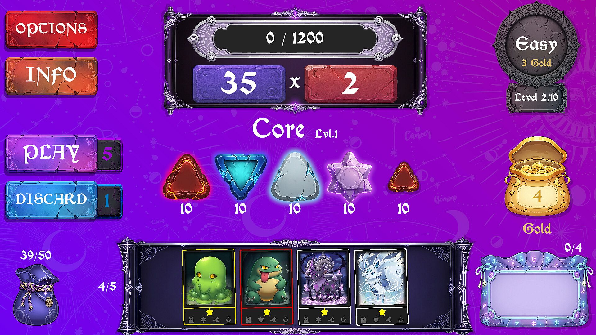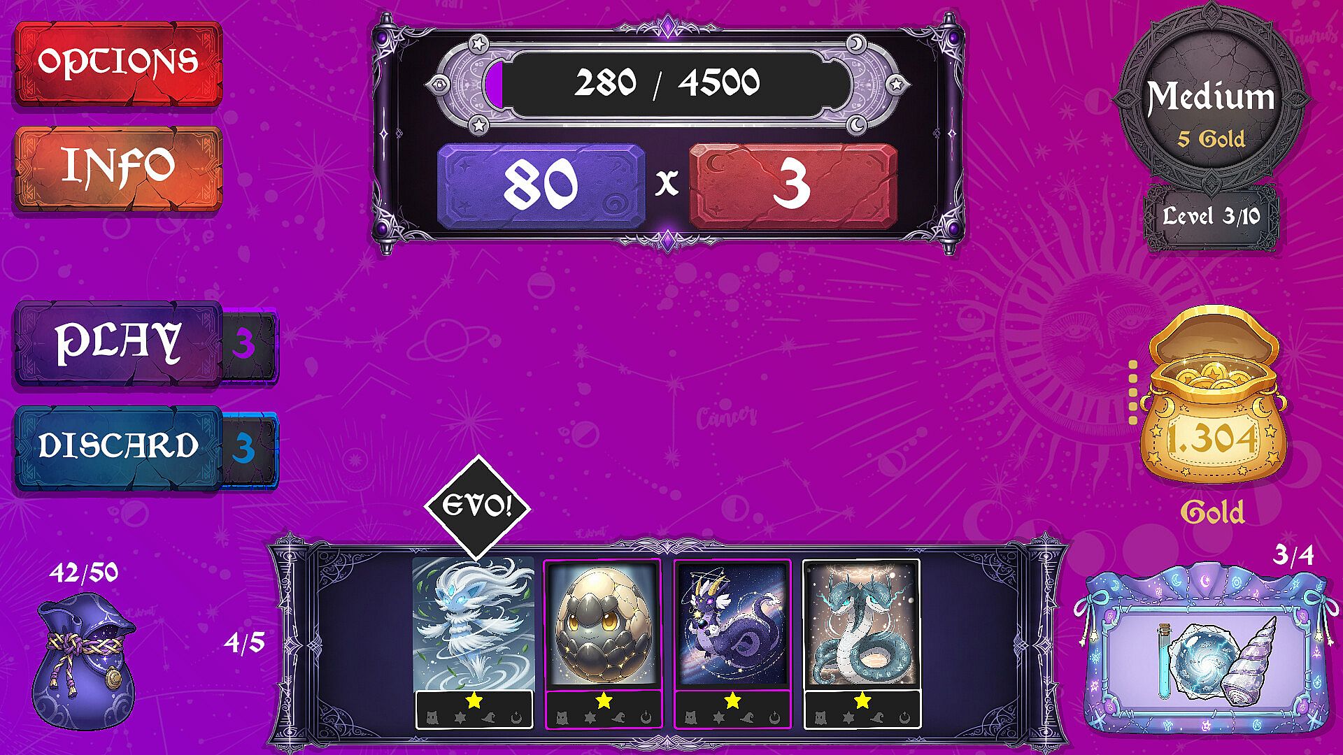 Channel the powers of Fire, Water, Earth, and Air to craft powerful combos. Build your deck, experiment with synergies, and unlock evolving strategies as you progress through randomized stages. Just don't drop your wand again...