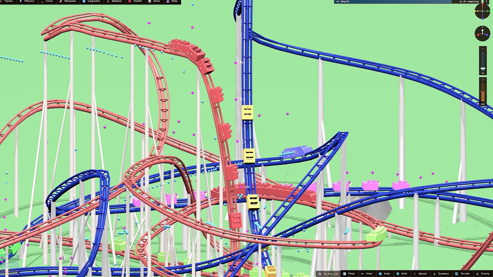 Free-form track building - Create loops, corkscrews, hills, and drops with an extremely easy coaster builder.